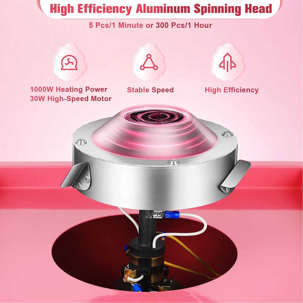 ADH Commercial Cotton Candy Floss Machine Features & Details 【ASSURING QUALITY】- Commercial cotton candy machine, with 1000W max heating power, 30W operating power. 21″ food-grade stainless steel bowl, easy cleaning. Aluminum sugar outlet for even heating. 【CONVENIENT & EFFECTIVE】- Cotton candy maker machine with simple and precise control area, including voltage meter, fuse, stepless temperature controller, easy ON/OFF button. User-friendly even for beginners. Quick, yet whisper-quiet operation to produce up to 7 servings of tasty cotton candy in a minute, creating a wonderful experience for you! 【STABLE DESIGN】- Tough stainless steel locking clips and rubber gaskets help hold down the bowl tightly. Skid-resistant rubber feet decreases vibration, making candy making process smooth and quiet! 【EASY OPERATION】- Turn on the motor and warm up for 2 minutes. Then turn on booster (4 minutes’ warm up). Just pour floss in sugar cap and you have get your own cotton candy! Convenient drawer for storing raw materials and tools. 【CREATIVE & ENJOYABLE】- Innovative design makes setting up easy and cleanup super fast, so you can indulge in a flavorful treat whenever without having to spend unwanted time cleaning up. Great for birthday parties, graduation parties, festivals, carnivals and fairs Electric Commercial Cotton Candy Machine With sugar as the main raw material, this pink hard candy cotton candy maker can produce colorful cotton candy with a variety of tastes. Products are no longer simply white, but red, yellow, blue, green, purple, and other colors, environmental health and delicious. Produces up to 7 servings of cotton candy per minute, great for birthday parties, graduation parties, festivals, carnivals and fairs.
