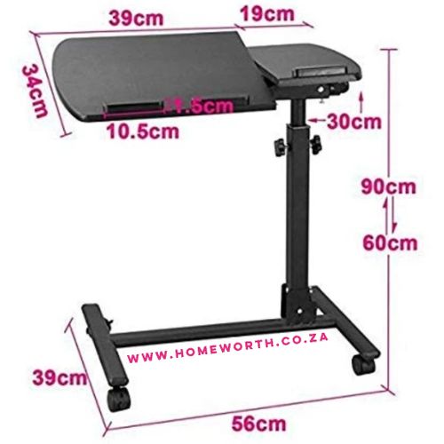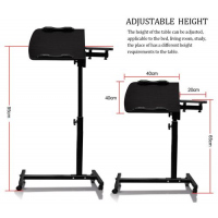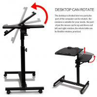 Laptop table UNIQUENESS:3 functions of combination. Ergonomic lifting according to your seat. 360° rotation of the surface.The desktop can tilt toward you appropriately when you want to get more close to the desk.Anti-slip surface will never let your laptop down. ADJUSTABILITY:Adjustable slanted table top option allows for comfortable typing or writing.Height adjustable range:27.5 -40″.360° free rolling to move easily and perfect for kids or adults to use beside beds,reading tables or study rooms,even you could use when you’re enjoying in bathroom. PORTABLE & EASY INSTALLATION:4 wheels to help more easily whenever and wherever. The wheels do pretty good on short carpet and hardwood floors.Takes about 15 minutes to read the instructions and assemble. PREMIUM QUALITY:The product is perfect for those sitting at a desk or chair with their laptop.As a laptop stand it was excellent and extremely sturdy. Overall weight capacity:100 lbs. Specification Material:MDF/Metal Color:Black Overall Dimensions: 24″ Wx 16″ D x 27.5″ to 40″H Net Weight:5.5kg/12.13lb Gross Weight: 5.98kg/13.18lb 1.5″ Rolling casters/wheels (2 locking) Overall Weight Capacity: 100 lbs. Package Included 1xLaptop Desk