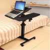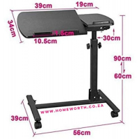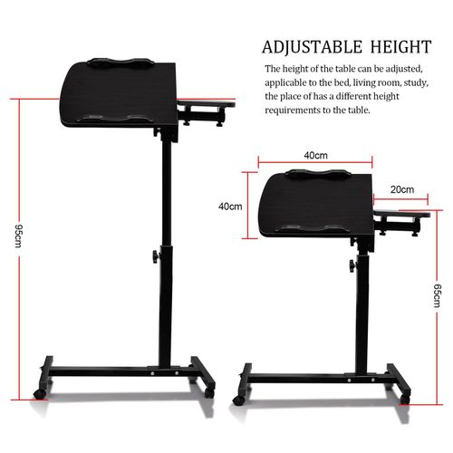 Key Features: Compact Size:The side desk on wheel area is 24″ W x 16″ D.Applies to small space.Small but more convenient to use,great use for the side of couch,bed,home office desk,etc. Adjustability:Adjustable slanted table top option allows for comfortable typing or writing. Height adjustable range: 27.5″-40″. 360° free rolling to move easily and perfect for kids or adults to use beside beds,reading tables or study rooms. Premium Material:This panel made by particle wood with high glossy finish,very smooth;Welded metal frame provides rock solid stability and durability. Easy to Move:4 wheels to help more easily whenever and wherever.The wheels do pretty good on short carpet and hardwood floors.Takes about 15 minutes to read the instructions and assemble. Black in color