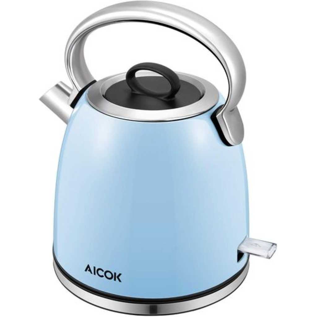 Key Features: Aicok Steel Fast Heating Temperature Adjustable Electric Kettle -Blue. Sicok 1.8 litres capacity Cordless Water level indicator Automatic/Manual switch off Built-in dry/boil sensor Built-in thermal fuse Overheat protection