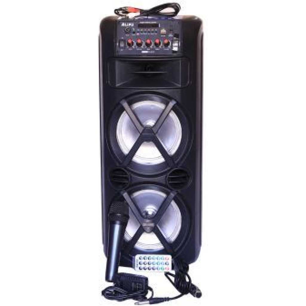 AILIPU Party Bass Bluetooth Speaker with In-built Microphone – Black The 10 Watt speaker offers loud, powerful, crystal clear sound your ears will love, Low distortion and good bass response (as low as 50-60 Hz). PORTABLE: From your office to your kitchen, living room or bedroom, this small but powerful speaker can sit on a shelf; provide the music for your outdoor pool-side party or on the patio. HANDS FREE CALLING: A built-in mic, NFC capability and 33′ blue tooth range, make this great for music and phone calls. It can activate SIRI and display battery life on your iPhone. GREAT BATTERY LIFE: Features an exceptional battery life of up to 12 hours playback, with blue tooth playback of 8 to 10 hours. Includes micro USB charging cable and 3.5mm audio auxiliary cord. GOOD LOOKING SOUND: This “Ailipu” portable travel speaker comes in a choice of trendy colors and styles that makes for a sleek, modern addition that matches any decor. Select from a wide range of Unique products on TilyExpress and enjoy convenient and secure online shopping, delivery, guaranteed products, and competitive pricing. F eatures The speaker is huge with Bluetooth and a microphone plus a remote to control it. It can easily get a party on the go!!! Can work as a p.a system It has its own equalizer inbuilt.