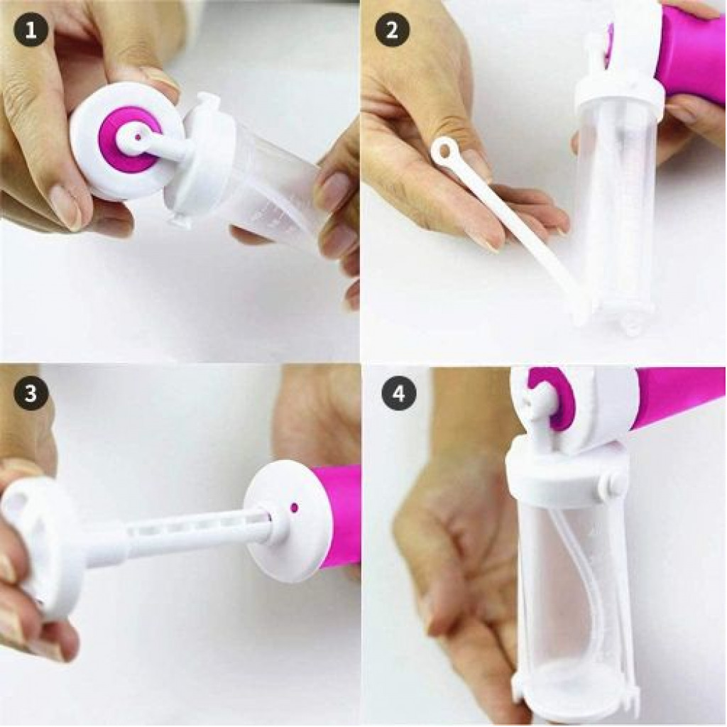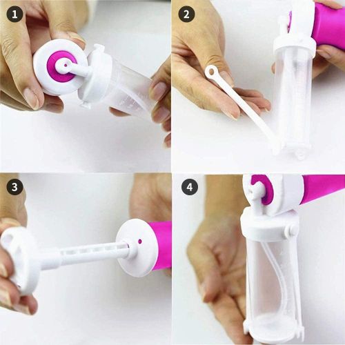 Airbrush for Cake Coloring, With 4pcs Baking Spray Gun Decoration Tools Pump- Multi-colour Enjoy the quality time with family and friends while making cakes, cupcakes, desserts and other desserts using our products in just a few minutes to paint or spray glitter to create a fun, beautiful and appetizing cake. Specifications: Color:Pink,White Material: ABS( Food-grade plastic) Airbrush Pump Size: 24.5 * 12 * 3.5 cm / 9.64 x 4.72 x 1.37 in Transparent Vial Size: 8 * 3 cm / 3.15 * 1.18 in Storage Tank Capacity: 1.41 oz (40 ml) Weight: Approx. 134g with packing Product Included: 1* Manual Airbrush Pump Sprayer 4* Reservoirs 1*Sponge Brush Precautions: 1. Each spare transparent small tube is sealed with a cap, open before use and attach the bottle to the spray gun pump. 2.To avoid clogging the pump, use fine sequins rather than pure sequins. 3. Liquid and dry powder should be used separately. 4. In order to avoid blockage, you need to wait for the pump to dry completely before adding the flash powder. When you make a beautiful cake, that kind of joy is unparalleled. I believe that this Manual Airbrush is an indispensable tool for you to make beautiful cakes. 1.Fine glitter rather than course glitter should be used in order toavoid clogging the pump.Suggest having a pump for each color of glitter and different pumps for glitter. 2.Bakers who plan to use the manual airbrush,for both liquid and dry applications;In order to avoid potential clogging or the need to wait for the pump to totally dry before using glitter.