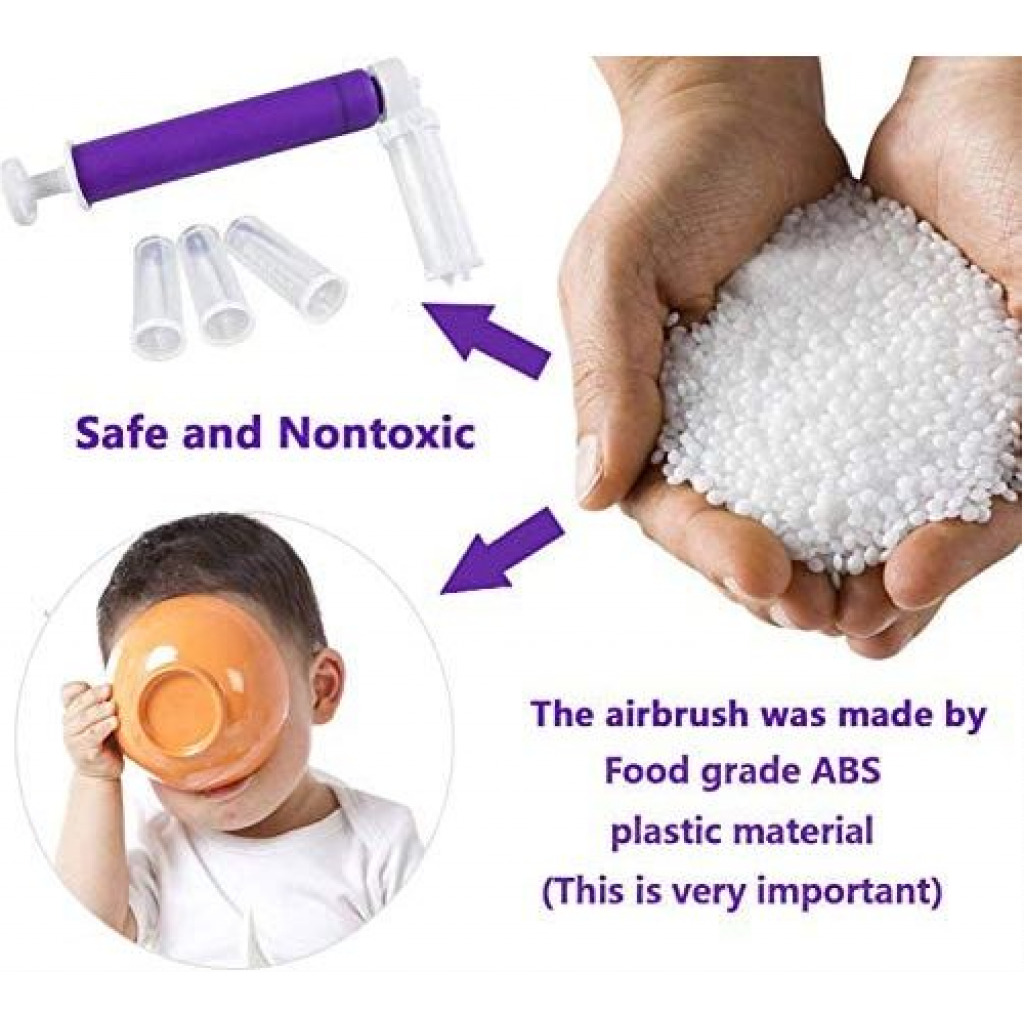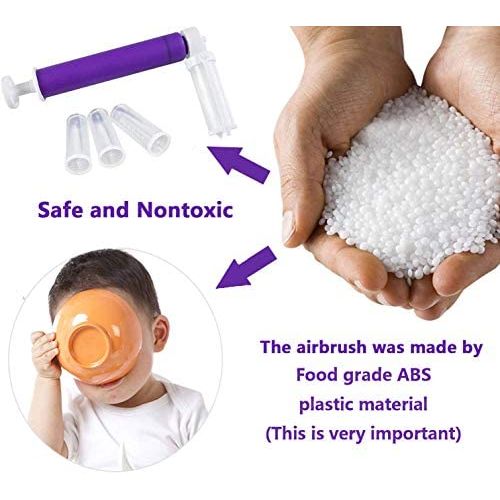 Key Features: Ergonomic Design 【EXCELLENT QUALITY AND MATERIALS】 The high-grade plastic is made of food-grade silicone, which is environmentally friendly, stronger, more flexible and durable, easy to clean and can maintain its original shape and non-stick quality through multiple uses. 【EXCELLENT UESER EXPERIENCE】Use a manual spray gun to spray paint, glitter, pearl powder, vanilla powder, etc., you can make an attractive and satisfying cake, and make you feel full of accomplishment. 【SIMPLE AND EASY TO USE】 It release spray the glitter well, easy to clean and come with extra attachment bottles.The transparent canister allows you to check the remaining volume in time. Not only suitable for professional pastry workers but also for beginners. 【SUITABLE FOR ALL PASTRIES】 easy to use manual Airbrush, suitable for all kinds of pastries, you can make any cake you want.
