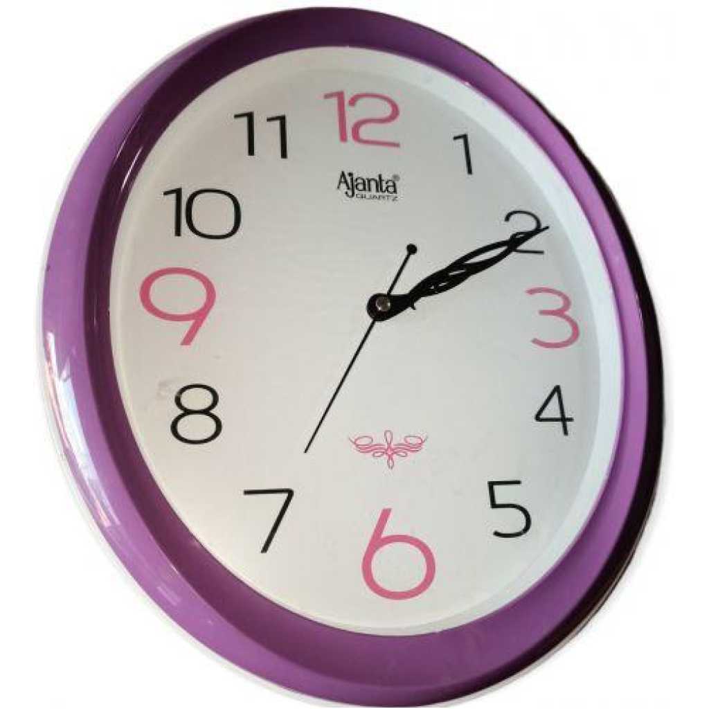 Key Features: AJANTA WALL CLOCK Silent wall clocks Clear to read The front glass cover guarantees a perfect view. Long-lasting material Adds beauty to your home Simple and elegant modern style Colour –Purple Material – Plastic Item Dimensions – LxWxH10 x 250 x 250 Millimeters Shape: Round Weight – 500 Grams Are Batteries Included: Yes Number of Batteries :1 AA batteries are required. (included) Mounting Type: Wall Mount Brand – Ajanta