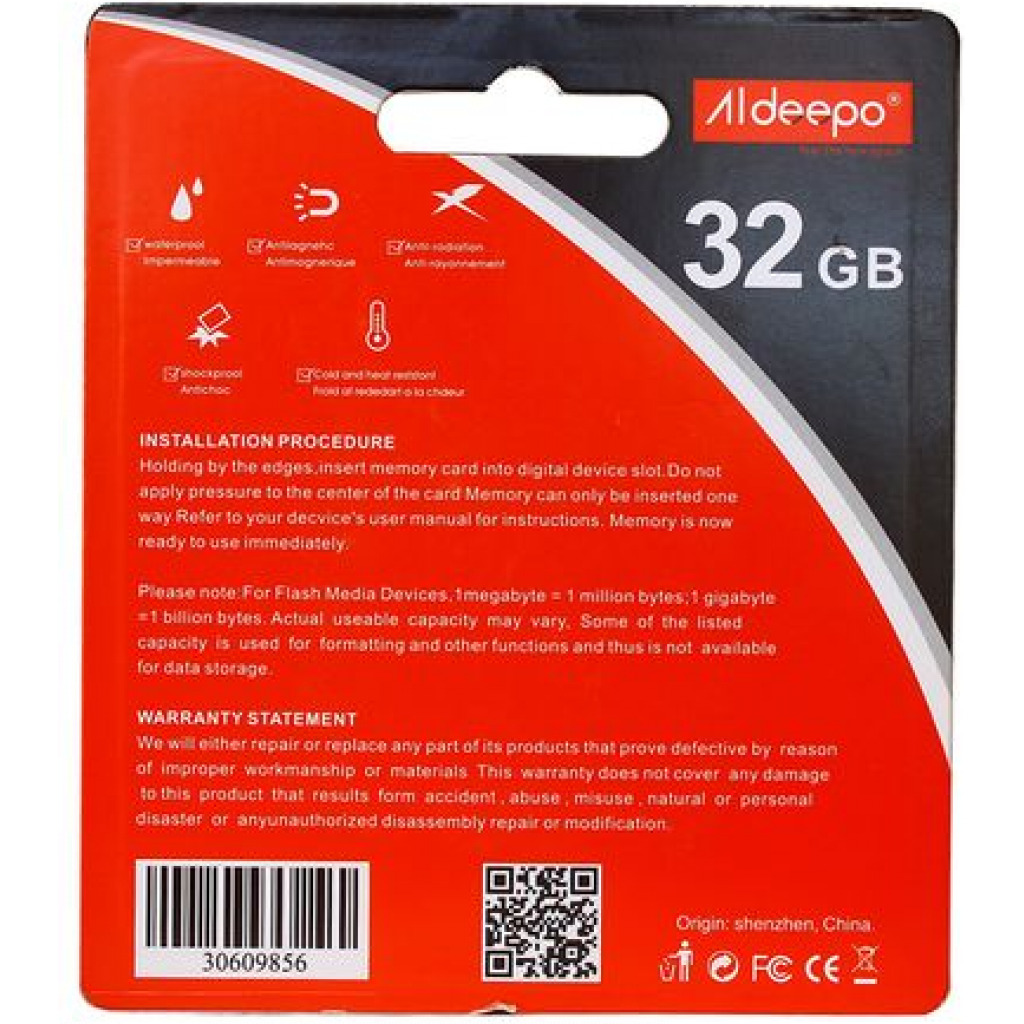 Key Features: Aldeepo Memory Card 32GB – Black Brand: Aldeepo 32GB High quality Affordable Durable