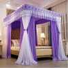 All Puple 4 Stand Curtain Mosquito Net Beautiful and stylish design: Luxurious Canopy Bed Curtains, More than a simple Bed Curtains, ingenious bed canopy design makes your own bed an artwork, create an atmosphere of elegance and romance for you. Turn your bedroom to a luminous palace and fulfilled your fantasy of princess. ● High Quality Material: The bed curtain is made of high- quality polyester fiber fabric, fine mesh, the bed canopy is soft, providing extra comfort. Canopy Netting with 360 degrees design effectively protecting your sleep. And the fabric is durable, which resists to scratch, lasting long service time. ● Unique design with bed canopy: 4 opening design. It used together with the bed curtain, it can shading and dust-proof. Creative new double layers design! The dustproof and shading effect is good, and the detachable design is suitable for use in all seasons