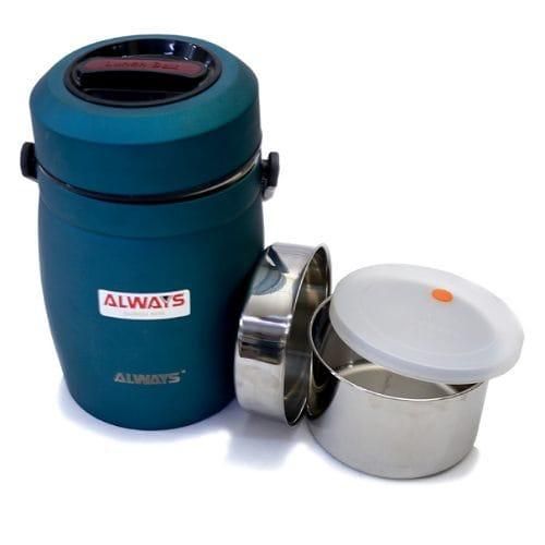 Key Features: Always Vacuum Insulated Thermo Food Flask, Lunch Box, Warmer, 1.5Litre- Blue Color: Blue Material: Stainless Steel Made of SUS304 stainless steel Double-wall vacuum Insulation for max temperature retention Silicone ring to prevent leaking The idea for carrying hot food as interior heat will not transfer to exterior Ideal food box for takeaway. More hygienic and environmentally friendly. Convenient to bring along to workplace, office, picnic, and school