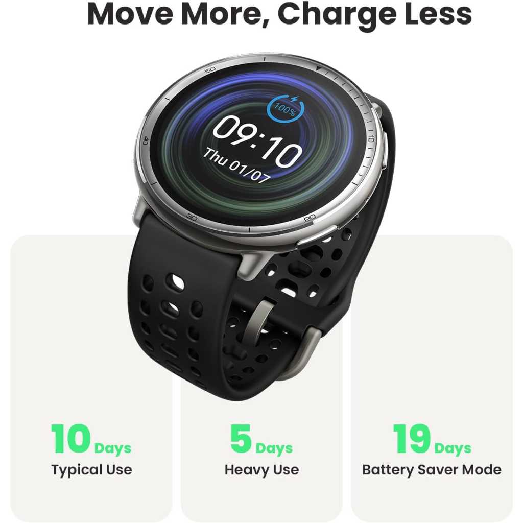 Key Features: Stylish Design, Bright Display: The sleek stainless steel build blends classic style with workout durability, while the bright 1.32″ AMOLED display keeps your data easy to read, even under bright sunlight. Precise Heart Rate & Sleep Tracking: Amazfit’s BioTracker technology tracks your heart rate and sleep data with accuracy that previous sensors just can’t match. Up to 10 Days of Battery Life: With long battery life that lasts up to 10 days with typical use, nightly recharges are a thing of the past. Free Maps with Turn Directions: Stay on-track with free downloadable maps, and get turn-by-turn guidance on-screen or via your Bluetooth headphones. Enjoy ski maps for global resorts, including guidance for cable cars, slopes, and more. Faster and More Accurate GPS Tracking: 5 satellite positioning systems ensure fast GPS connection and accurate positioning whenever you’re out running, walking, cycling or hiking. Over 160 Sports Modes: The Amazfit Active 2 smart watch offers 160+ workout modes, including HYROX Race, Strength Training, running, padel, and yoga. With 50m water-resistance and a barometer, go swimming and skiing with confidence. Free and Safe Zepp App: Featuring no hidden mandatory subscription fees, the Zepp App benefits from industry-leading data protection by AWS with GDPR compliance. Find all your health and fitness data, along with actionable insights, in one place. Speech-to-Text Message Replies: Zepp Flow offers full voice control of your smartwatch. Use it to send replies to Android messages using speech-to-text or keyboard input – it can even help with translations and tone suggestions. Choose Your Look: The Premium version features resilient sapphire glass, a luxurious leather strap, and a free additional silicone sport band. The Sport version features a breathable silicone strap in black or red, for comfort during workouts.