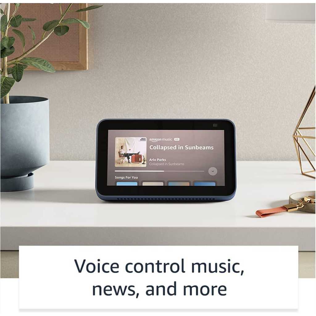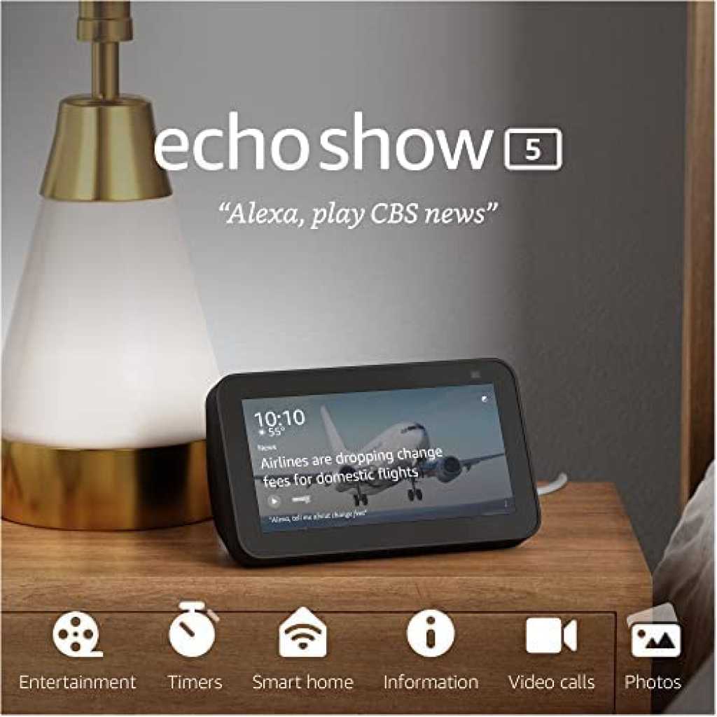 Amazon Echo Show 5 | Smart Display With Alexa And 2 MP Camera | Charcoal . See your day clearly with the All-new Echo Show 5 and Alexa at the ready – Set alarms and timers, check your calendar or the news, make video calls with the 2 MP camera, and stream music or shows—all with your voice.