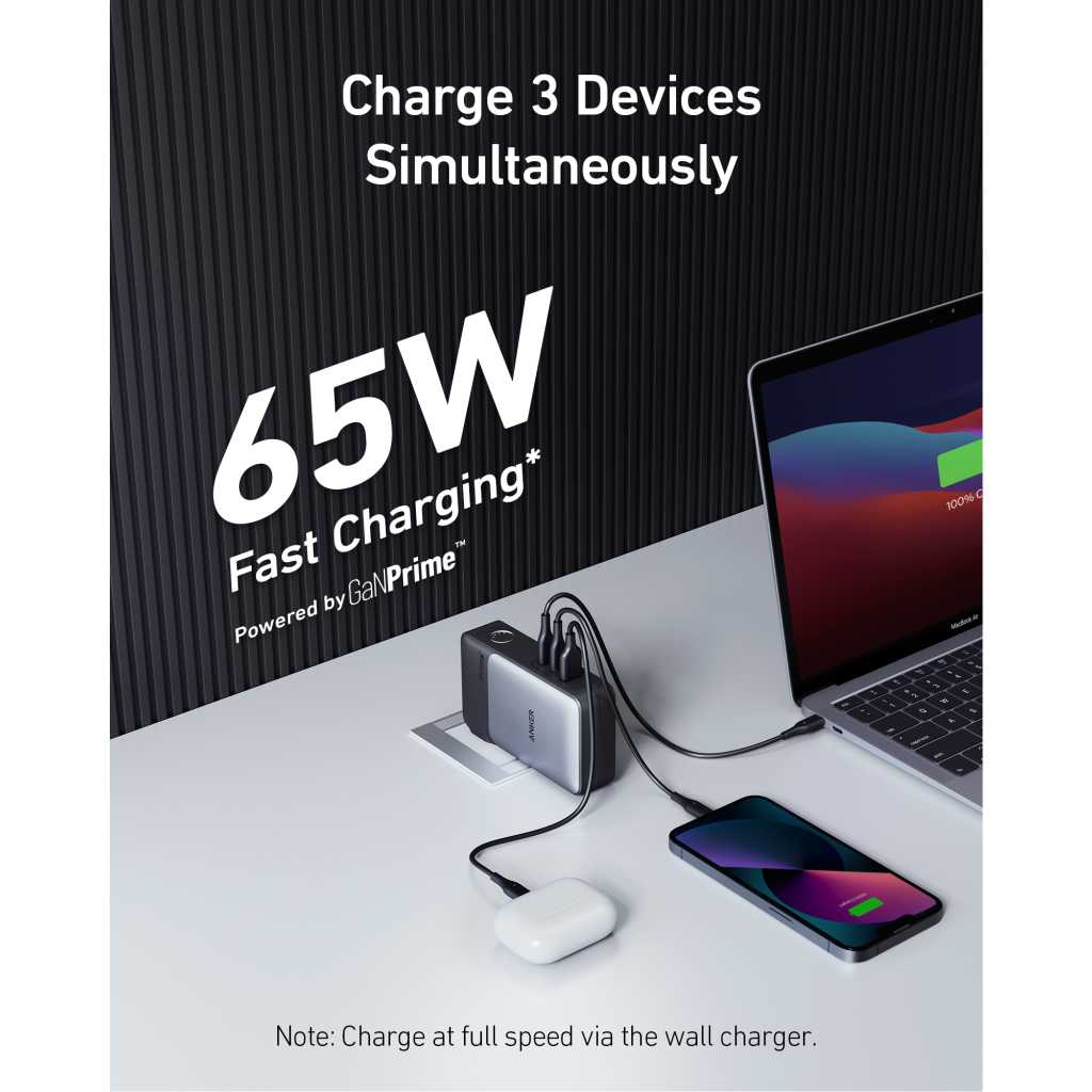 Key Features: Anker GaNPrime Laptop & Phone Power Bank, 2-in-1 Hybrid Charger, 10K 30W USB-C Portable Charger with 65W Wall Charger, Works for iPhone 15/15 Plus/15 Pro/15 Pro Max/14/13, Samsung, Pixel, MacBook, Dell, and More. 2-in-1 Charger: Enjoy the best of both worlds with a hybrid 65W wall charger and 10,000mAh portable charger in one. Power for 3: With 2 USB-C ports and 1 USB-A port, you can easily charge up to 3 devices at once. Powered by GaNPrime™ : The portable charger is equipped with Anker’s most advanced GaN-powered charging system, an innovative stacked design, PowerIQ™ 3.0 for higher efficiency, and ActiveShield™ 2.0 for intelligent temperature monitoring. Wide Compatibility: Works flawlessly with a wide range of devices including phones, tablets, laptops, and more. What You Get: Anker 733 Power Bank (GaNPrime PowerCore 65W), welcome guide, 24-month stress-free warranty, and friendly customer service.