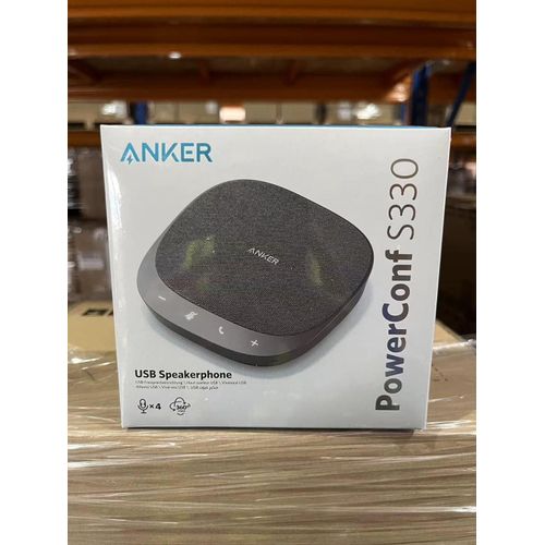 Key Features: Anker PowerConf S330 USB Speakerphone, Conference Microphone for Home Office, Smart. Smart Voice Enhancement: Eliminate background noise while simultaneously enhancing voices for a professional meeting experience in any environment. Plug and Play: Connect via USB-C (includes standard USB adapter) and join meetings in an instant. A wired connection offers a stable and reliable USB speakerphone experience. 360° Voice Coverage: A USB speakerphone with 4 high-sensitivity microphones to pick up all voices within 3m in super-high clarity. Superior Sound: A 1.75” driver paired with 2 passive bass radiators adds body and depth to both meeting audio and music. What’s In The Box: PowerConf S330 USB Speakerphone, USB-C to USB-A adapter.