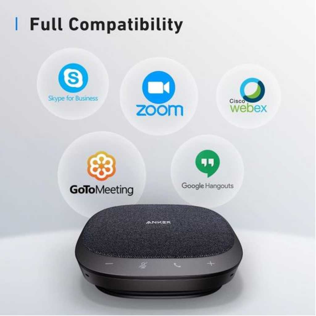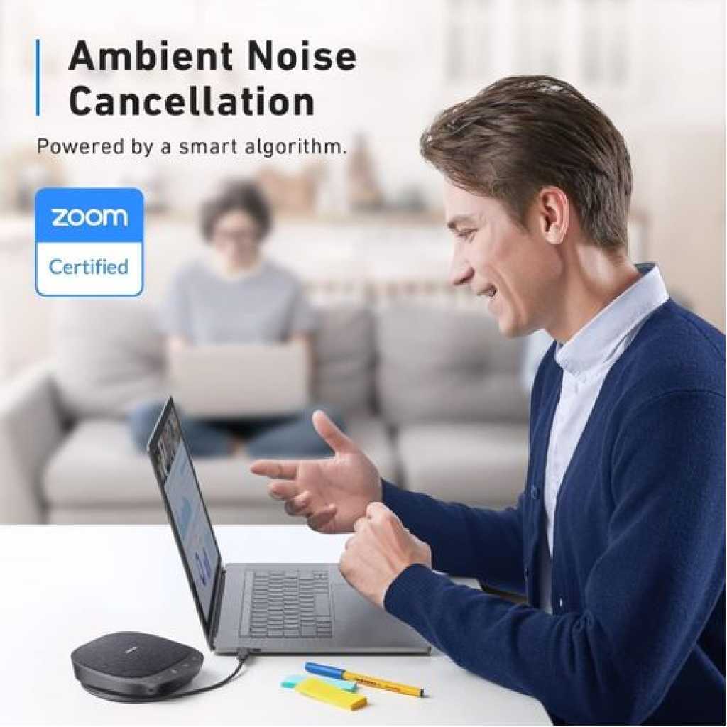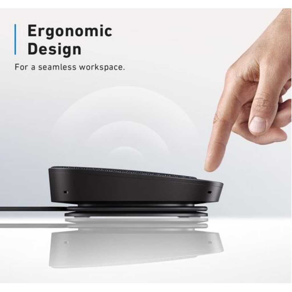 Anker PowerConf S330 USB Speakerphone, Conference Microphone for Home Office, Smart. Anker PowerConf S330 USB Speakerphone, Conference Microphone for Home Office, Smart Voice Enhancement, Plug and Play, 360° Voice Coverage via 4 Microphones, and Powerful Sound. Smart Voice Enhancement: Eliminate background noise while simultaneously enhancing voices for a professional meeting experience in any environment. Plug and Play: Connect via USB-C (includes standard USB adapter) and join meetings in an instant. A wired connection offers the most stable and reliable USB speakerphone experience. 360° Voice Coverage: A USB speakerphone with 4 high-sensitivity microphones to pick up all voices within 3m in super-high clarity. Superior Sound: A 1.75” driver paired with 2 passive bass radiators adds body and depth to both meeting audio and music. What’s In The Box: PowerConf S330 USB Speakerphone, USB-C to USB-A adapter. Voice Balancing PowerConf S330 uses automated gain control to balance volume levels. People further away or speaking more quietly are consistently loud and clear. Full Duplex Communication Unlike ordinary USB speakerphones, PowerConf S330 is able to relay sound from both ends simultaneously. Discussions are effortlessly efficient. Universal Compatibility A USB speakerphone that works with all leading online conferencing services such as Zoom, Skype, Google Hangout, FaceTime, WebEx, and GoToMeeting. Work On-the-Go Small enough to fit easily into a bag or backpack so you’re ready to turn any place into a work space. Any USB Port This USB speakerphone comes with a USB-C to USB-A adapter to ensure compatibility with any system. AnkerWork Software Update to the latest firmware for an optimum meeting experience. Full Duplex Audio: 2-way clear communication even if both ends are speaking simultaneously. Fully Compatible: A USB speakerphone designed to work effortlessly with all leading conference software. Auto Echo-Cancellation: A smart algorithm removes echo and feedback from remote calls. Computer Software: Get AnkerWork for PC or Mac to unlock full USB speakerphone functionality. Professional Design: Sleek looks and premium materials combine for a USB speakerphone that fits into any workspace.