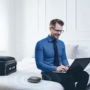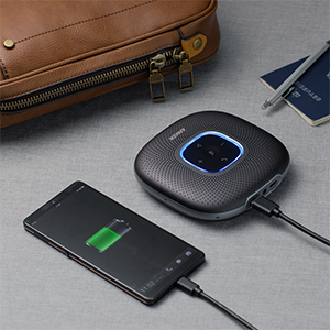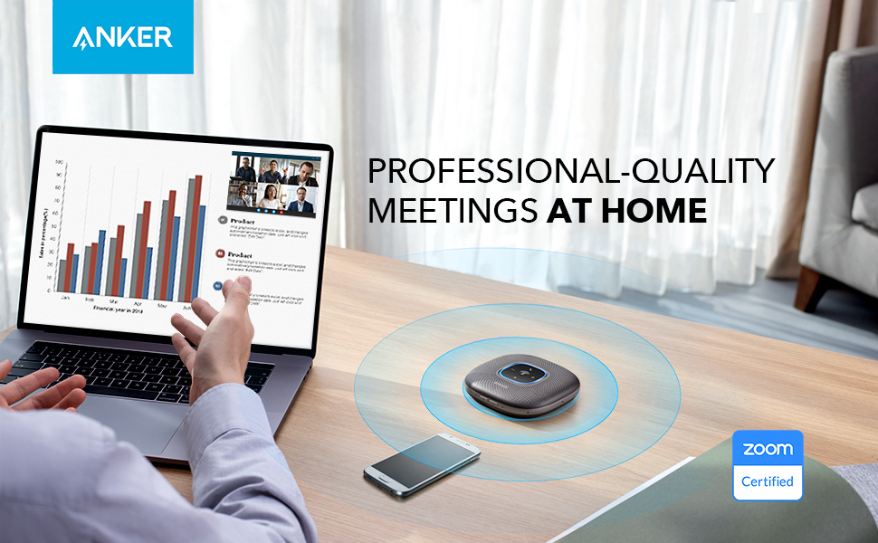Anker PowerConf Speakerphone, Zoom Certified Conference Speaker with 6 Mics, 360° Enhanced Voice Pickup, 24H Call Time, Bluetooth 5.3, USB C, Compatible with Leading Platforms for Personal Workspaces. 360° Coverage: 6 microphones arranged in a 360° array pick up voices from all directions to instantly transform any space at home or the office into a meeting room. Smart Voice Enhancement: PowerConf Bluetooth speakerphone utilizes a custom DSP algorithm to optimize your voice in real-time and effectively reduce background noises. Optimized Clarity and Volume: Your voice is automatically balanced to make up for differences in volume and distance from the Bluetooth speakerphone. Perfect For Home Offices: Connect to your phone via Bluetooth or to your computer with a USB-C cable—without needing to install drivers. PowerConf Bluetooth speakerphone is Zoom certified and is compatible with all popular online conferencing platforms. 24 Hours of Call Time: PowerConf Bluetooth speakerphone has a built-in 6,700mAh battery to power days of calls. Integrated Anker PowerIQ technology allows you to charge other devices via PowerConf at optimized speeds. Product Description