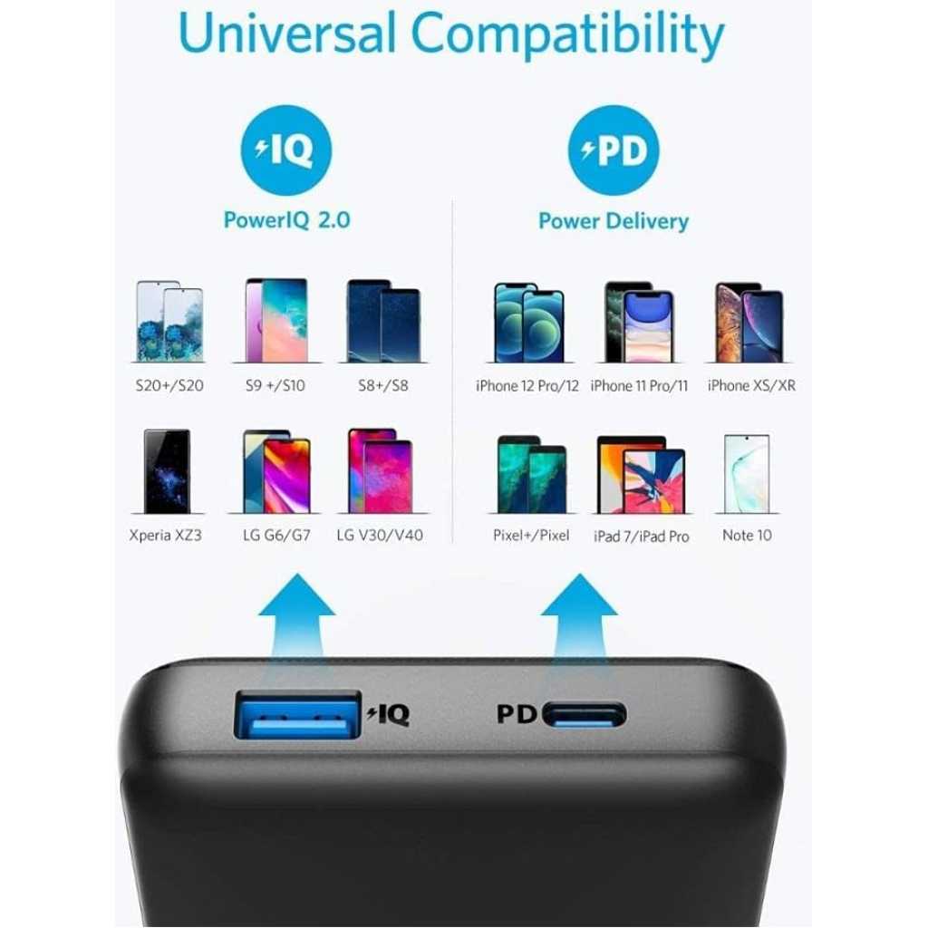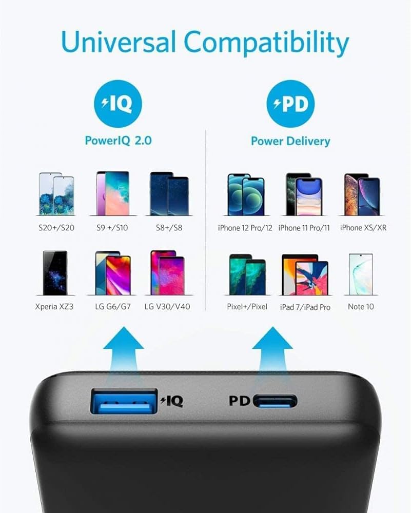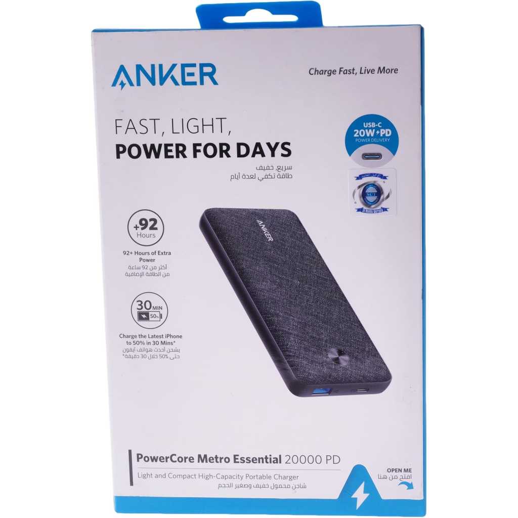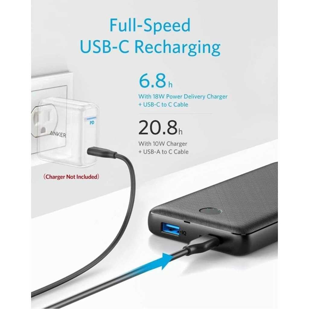 Key Features: The Anker Advantage: Join the 55 million+ powered by our leading technology. Charge Fast Anywhere: The 20W USB-C port has enough power to charge an iPhone 12 to 50% in just 30 minutes. Also equipped with an 18W USB port if you need to charge a second device. Ultra-High Cell Capacity: The massive 20,000mAh cell capacity provides 5 charges for iPhone 12, more than 4 full charges for Samsung Galaxy S10, and over 2 and a half charges for iPad mini 5. Wide Compatibility: Charge virtually any mobile device including phones, tablets, and more. What You Get: PowerCore Essential 20000 PD, USB-A to USB-C cable, USB-C to USB-C cable, travel pouch, welcome guide, and our worry-free 18-month warranty.