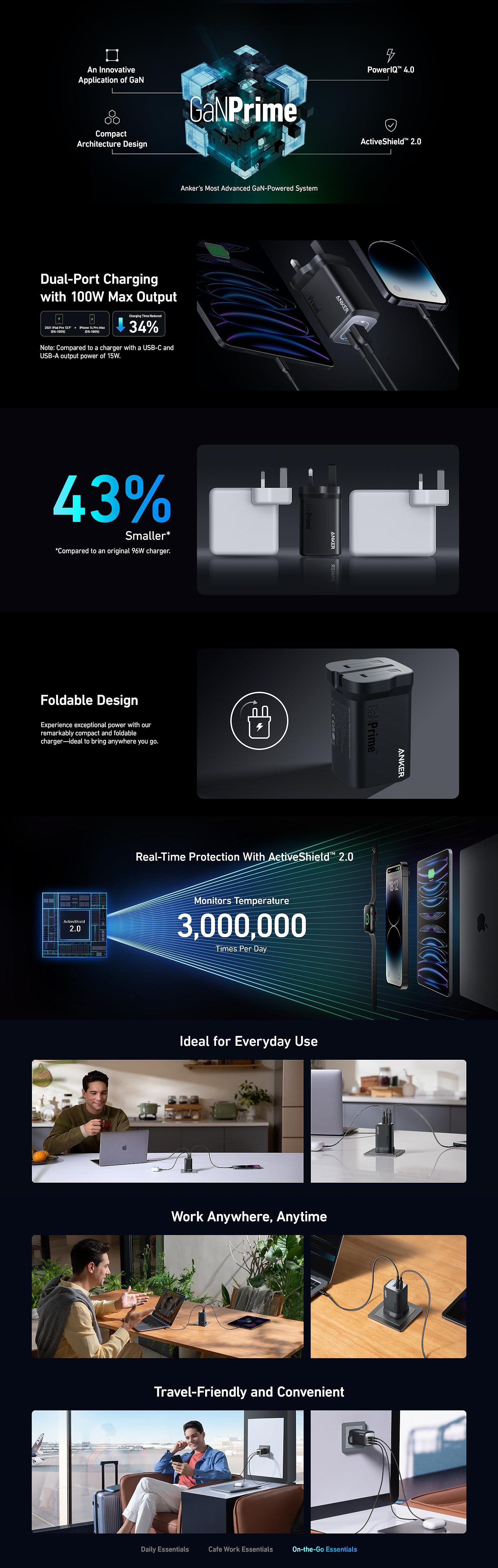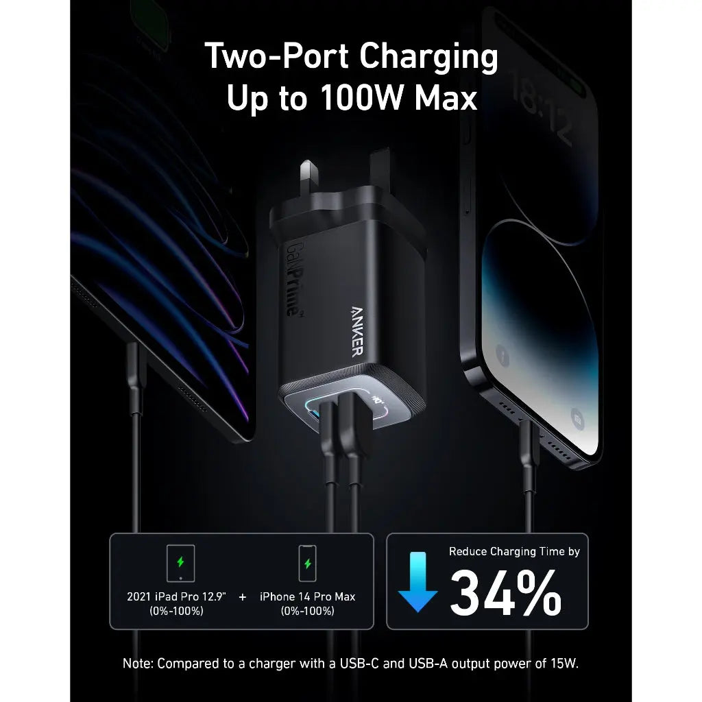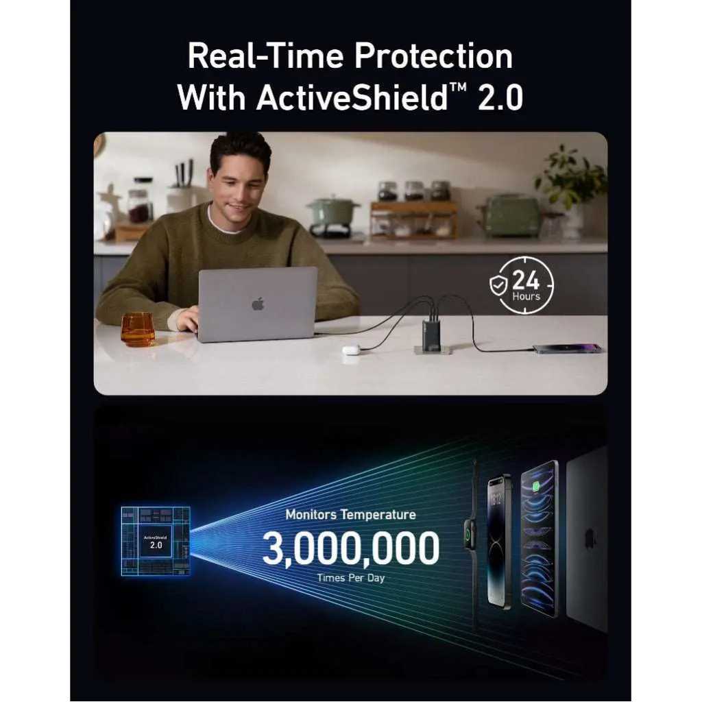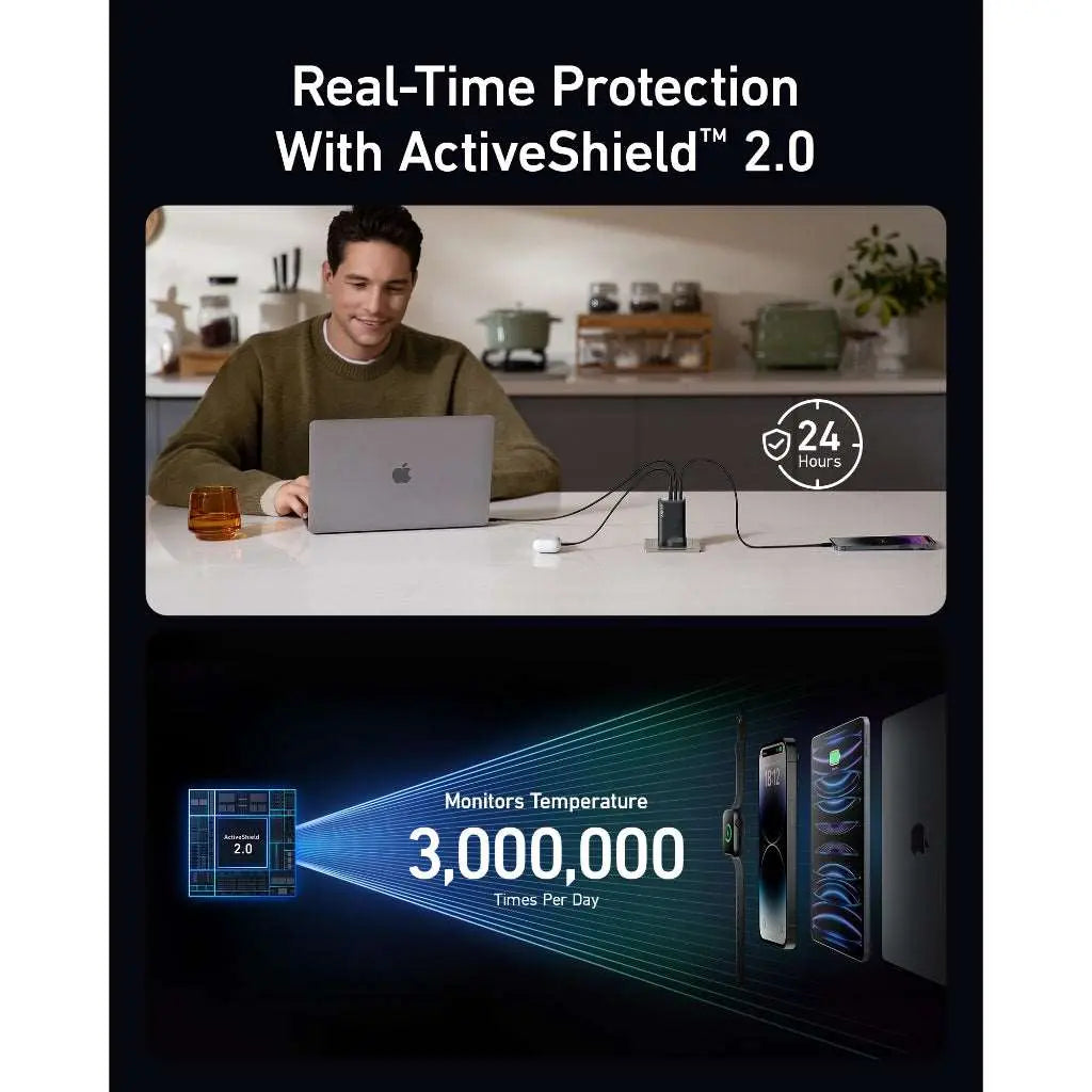Key Features: Power Trio on the Move: Simultaneously Fast Charging for 3 Devices with dual USB-C ports and a USB-A port, keeping all your gadgets at full strength on busy days. The Anker prime charger is perfect for multi-device users. Your Pocket-Sized Powerhouse: The Ultra-Compact Design of this Anker charger makes it 43% smaller than the original 96W MacBook charger, fitting effortlessly in any travel bag or purse. It’s a 100W USB C charger that’s easy to take with you. Guarded by Innovation: Advanced Safety Features with the ActiveShield 2.0 safety system provide peace of mind, protecting your devices from electrical anomalies. This GAN prime technology ensures your Anker prime charger delivers power safely. What You Get: Anker Prime 100W GaN Wall Charger (3 Ports), welcome guide, our worry-free 24-month warranty, and friendly customer service.