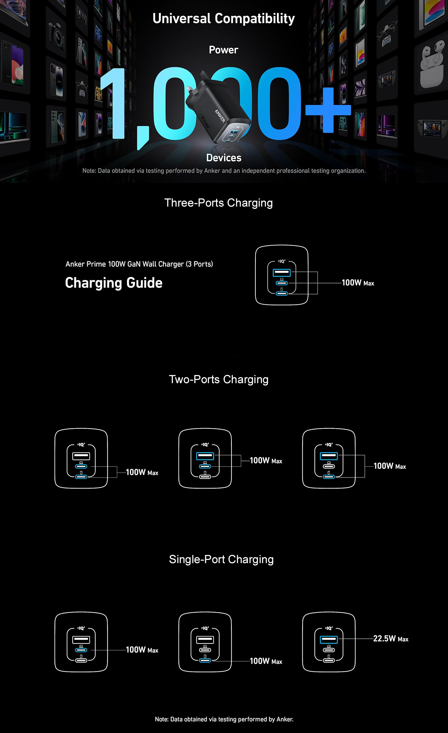 Anker Prime 100W USB C GaN Charger, 3-Port Compact Fast PPS Charger, for MacBook Pro/Air, Pixelbook, iPad, iPhone 16/Pro, Galaxy S23/S22, Note20, Pixel, Apple Watch, and More