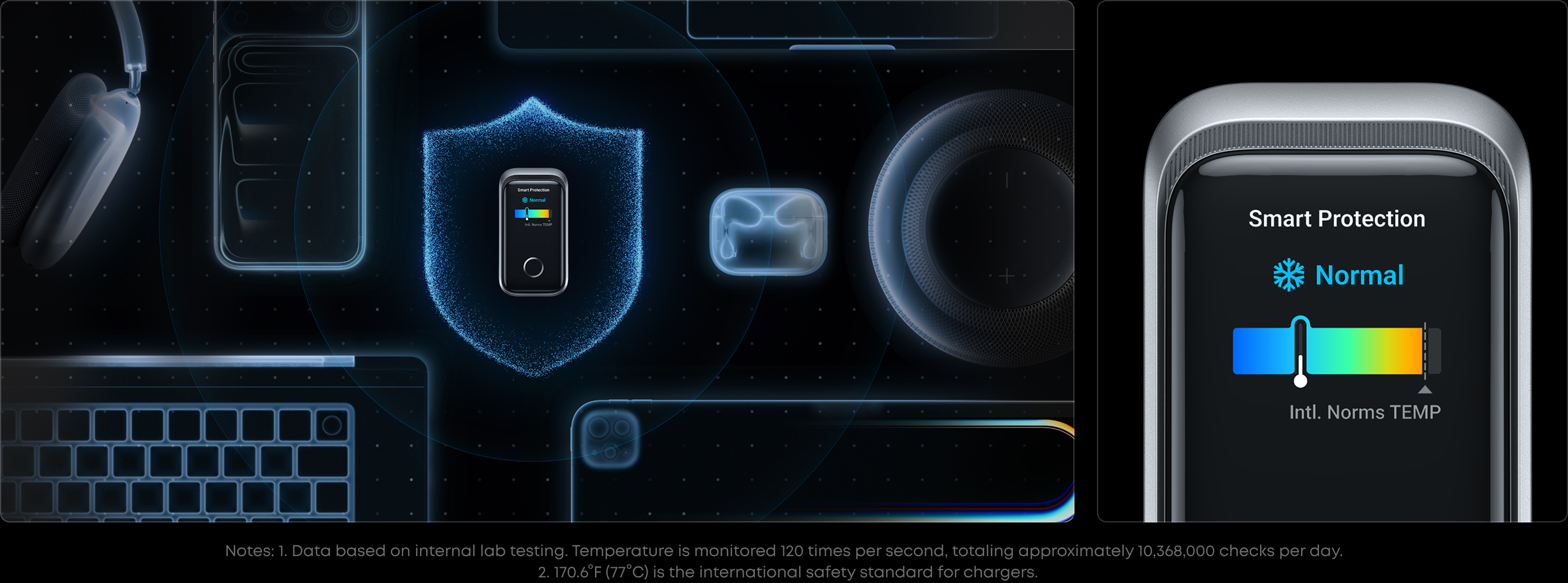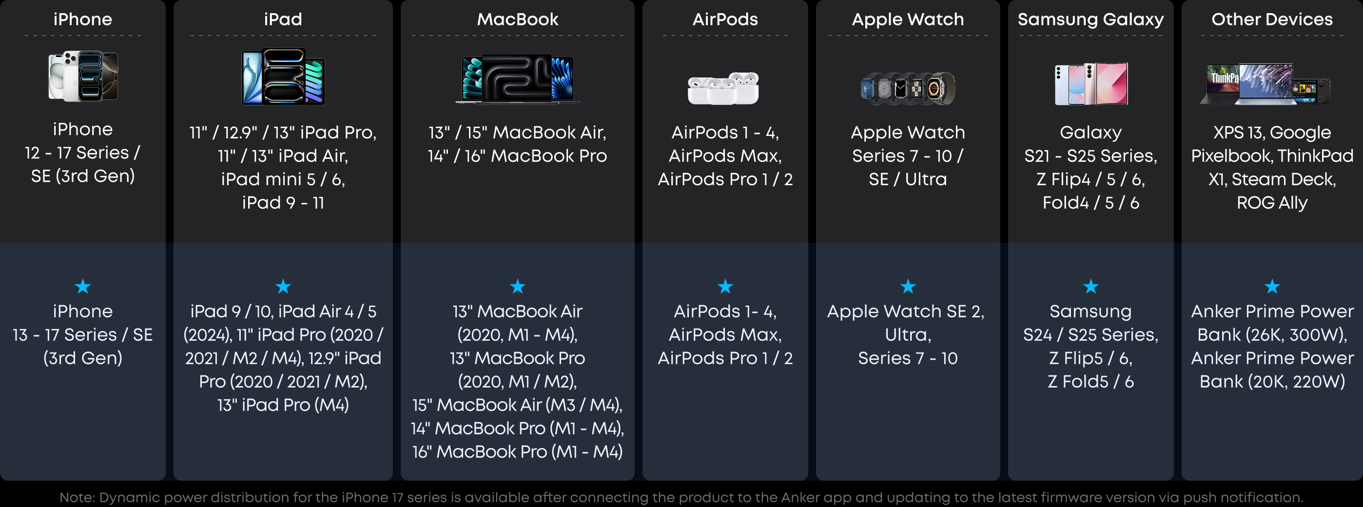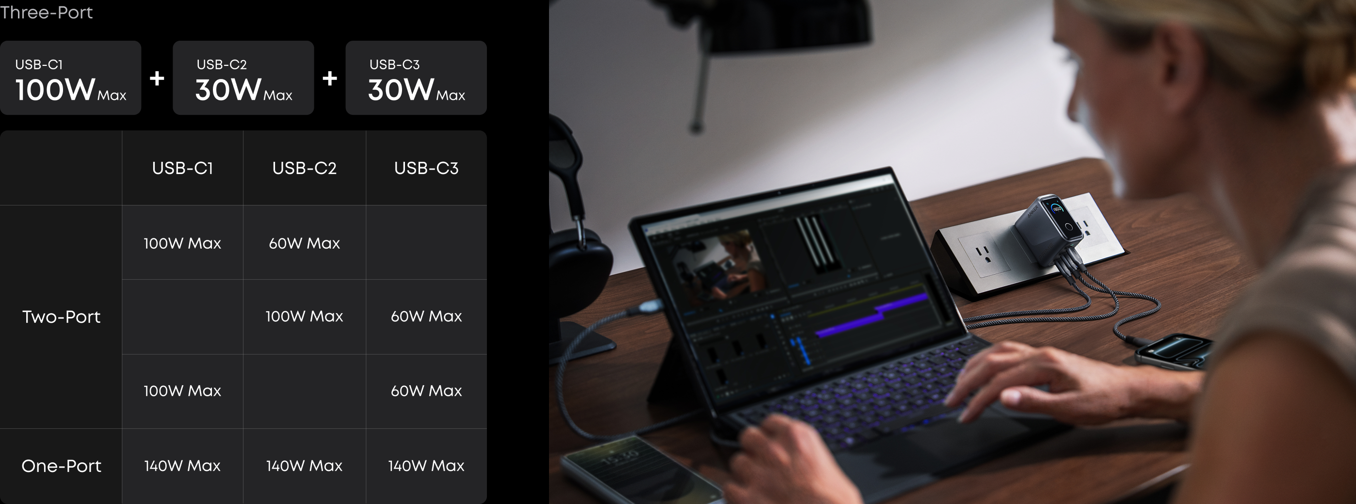 Key Features: AirPods-Size 160W Power: Delivering 1.35W/cm³ of power density, this sleek 3-port USB-C charger provides a total output of 160W while being as compact as an AirPods Pro 3 case, making it easy to carry yet powerful enough to handle your devices. 140W Single-Port Output: Enjoy a consistent 140W single-port output without derating, keeping laptops charging at maximum speed even during long work sessions or heavy loads. Charge a 16-inch MacBook Pro from 0 to 50% in just 25 minutes, without worrying which port to use. One Equals Three: With smart power distribution powered by PowerIQ 5.0, power a 16″ MacBook Pro, iPhone 16 Pro Max, and 11″ iPad Pro in the same time as three original chargers (140W + 35W + 35W). Carry one instead of three and stay fully productive on the go. Smarter Charging Control: With AnkerSense View, monitor power in real time on screen, switch modes instantly, and unlock custom modes through the app via Bluetooth. What You Get: Anker Prime Charger (160W, 3 Ports, Smart Display), welcome guide, 24-month warranty, and our friendly customer service.