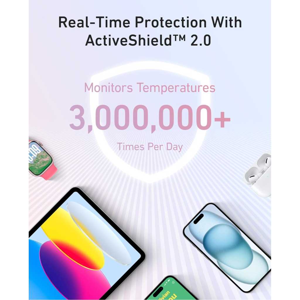 Key Features: Go Beyond with 20,000mAh: Carry the power you need to charge your iPhone 15 up to 4 times or your Samsung S24 3.79 times, perfect for extended travel and long days. 30W Two-Way Fast Charging: Charge quickly with 30W output and recharge just as fast with 20W input, keeping your devices ready in no time. Boost an iPhone 15 from 0 to 57% in just 30 minutes. Durability on Demand: Features a 5.98-inch built-in USB-C cable that’s not only convenient but also extremely durable, designed to withstand over 10,000 bends. Enhanced Safety: Equipped with ActiveShield 2.0 technology that monitors temperatures 3 million times per day and adjusts power output to ensure safe charging. What You Get: Anker Zolo Power Bank (20K, 30W) with a 5.98-inch (15.2 cm) built-in USB-C cable.