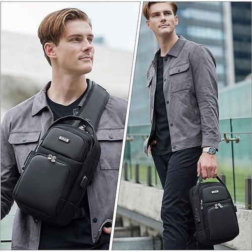 Anti Theft Bag For Men and Women, Sling Bag, Man Bags For Men Cross Body, Casual One Shoulder Backpack With USB Charging Port For Travel, Hiking, and Commute -Black ✅【Small Size, Large Capacity, Lightweight】The SEA-FEW cross-body bag is lightweight and very durable and sturdy! It’s small enough that it doesn’t feel like a backpack, but big enough to carry quite a bit. Only 13.4 x 7.8 x 3.5, 350g/0.77lb, Small zippered pocket for phones, power bank, wallet or outdoor/travel sundries. Perfect for daily used. ✅【USB Charge Port】This everyday sling bag comes with a USB charging port great convenience for charging your electronic devices via connecting your own power bank (power bank not included), you can connect your phone to and easily charge outdoors and travel, Very handy and fashionable, Hook up your phone and be on the go. ✅【 High-Quality Material】Shoulder bag for men and women is made of high-quality nylon, waterproof, dirt-resistant, lighter, and more easy to take care of. A shoulder backpack with excellent workmanship can show your outstanding temperament. Lightweight cross-body backpack bags sit nicely and freely on your back/chest and if this hiking bag for men gets dirty, only just need to wipe it off to keep it clean. ✅【Durable & Breathable Design】 This sling bag is made of Mesh material. It is very soft and breathable, so when you sweat a lot and there is a mesh on the back which can dry quickly You do not need to worry about this. The breathable back pad for you comfort. ✅【Multi-occasion】Sling pack bag for women & men is perfect for multi-occasion. sling backpack bag for hiking walking biking cycling hunting travel business gym camping beach and everyday use. perfectly works as a sling shoulder pack bag, wear this sling bag over either shoulder comfortably, or across the chest to deter thieves and keep your hands free. if the buyer has any problem with a product, looking forward to ur message!!