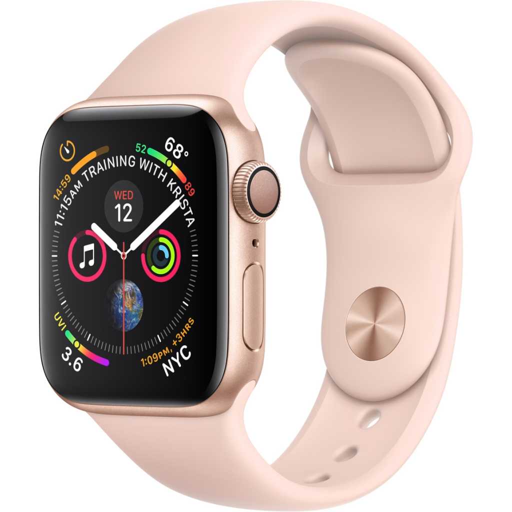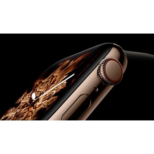 Key Features: Gold aluminum case Built-in GPS GLONASS Galileo QZSS S4 with 64-bit dual-core processor W3 Apple wireless chip Barometric altimeter Capacity 16GB1 Optical heart sensor Electrical heart sensor Improved accelerometer up to 32 g‑forces Improved gyroscope Ambient light sensor LTPO OLED Retina display with Force Touch (1000 nits) Digital Crown with haptic feedback Louder speaker Ion-X strengthened glass Sapphire crystal and ceramic back Wi-Fi (802.11b/g/n 2.4GHz) Bluetooth 5.0 Built-in rechargeable lithium-ion battery Up to 18 hours of battery life2 Water resistant 50 meters3 watchOS 5