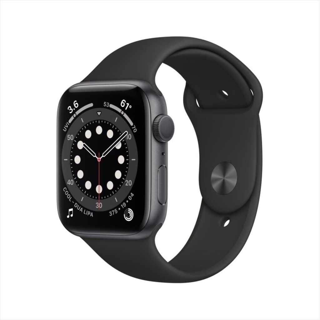 Key Features: GPS model lets you take calls and reply to texts from your wrist Measure your blood oxygen with an all-new sensor and app Check your heart rhythm with the ECG app The Always-On Retina display is 2.5x brighter outdoors when your wrist is down S6 SiP is up to 20% faster than Series 5 5GHz Wi-Fi and U1 Ultra Wideband chip Track your daily activity on Apple Watch and see your trends in the Fitness app on iPhone Measure workouts like running, walking, cycling, yoga, swimming, and dance Swimproof design Sync your favorite music, podcasts, and audiobooks Pay instantly and securely from your wrist with Apple Pay High and low heart rate notifications and irregular heart rhythm notification Built-in compass and real-time elevation readings Can detect if you’ve taken a hard fall, then automatically call emergency services for you Emergency SOS lets you get help from your wrist watchOS 7 with sleep tracking, cycling directions, updates to Siri, and new customizable watch faces