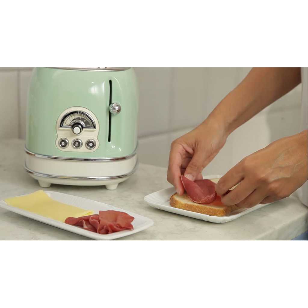 Key Features: Ariete 0155 Retro Style 2 Slice Toaster. 680 – 810 W Metal body Three functions include cancel, defrost, and reheat Six browning levels Crumb tray Automatic ejection of the slices Integrated cable compartment Non-slip feet Power plug- Type G