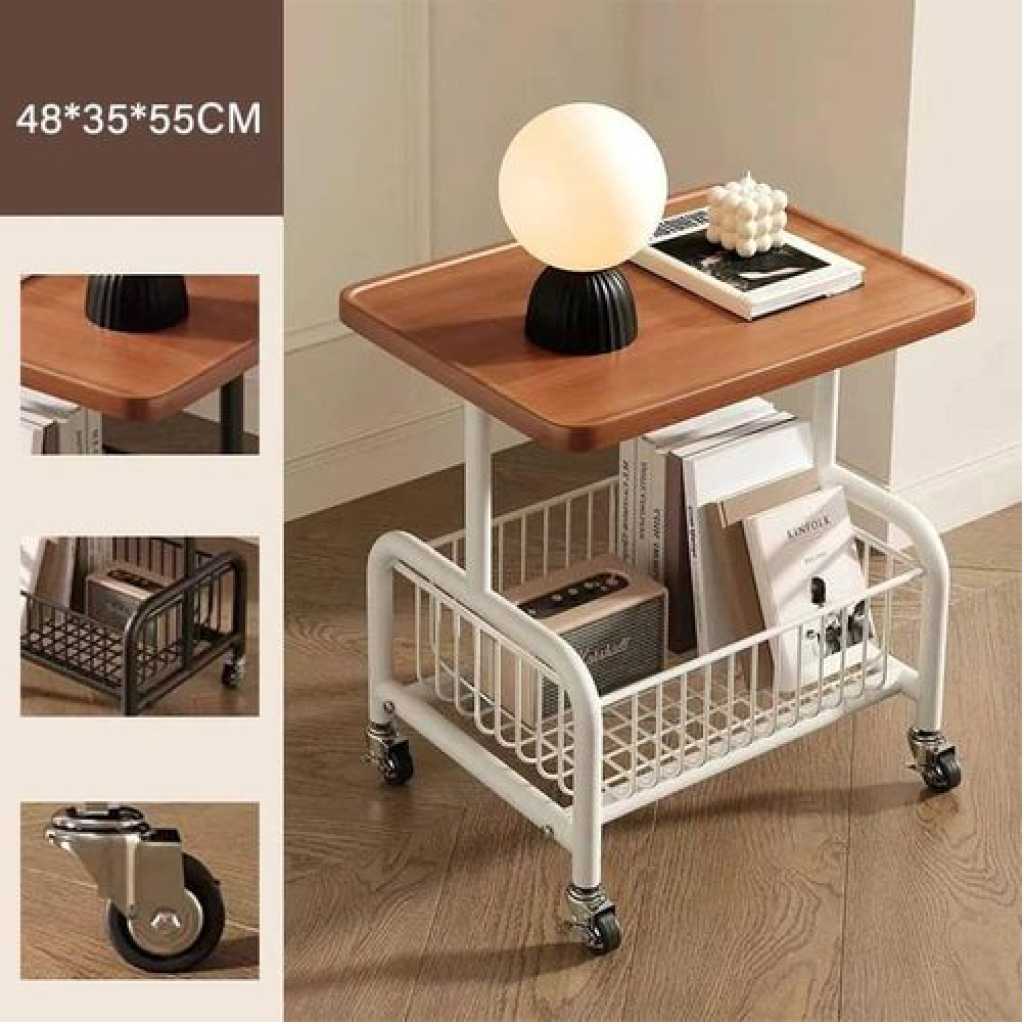 Armrest Side Stand Movable Home Small Coffee Table Built-in Nightstand, Trolley Rack Shelves Storage Sheets With Wheels Snack Storage Racks For Living Room Office