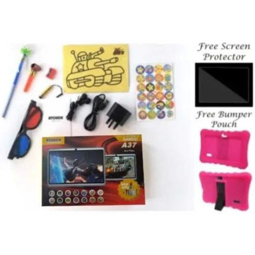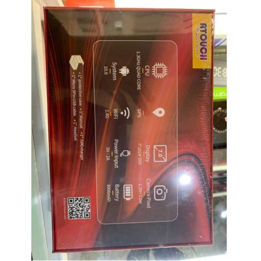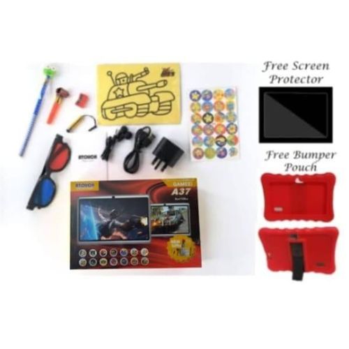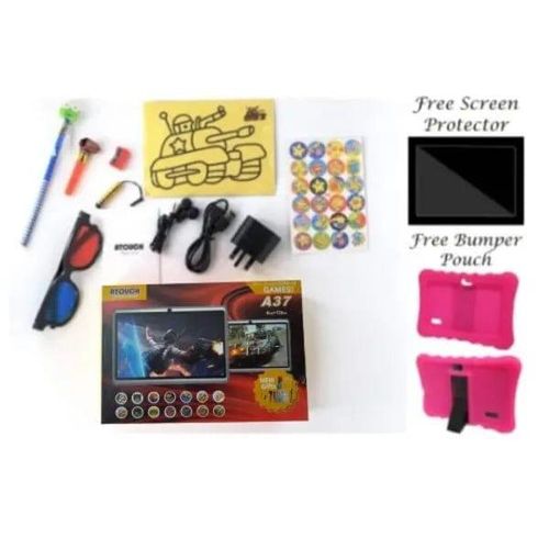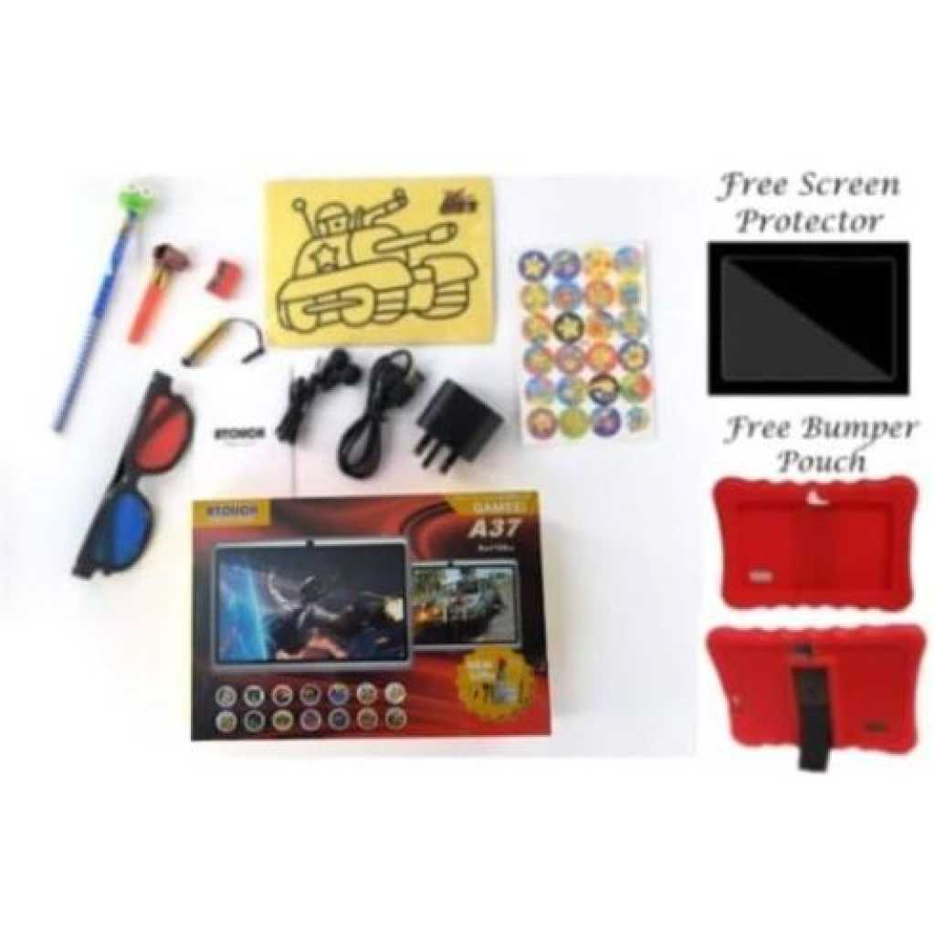 UNLEASH THE GENIUS IN YOUR CHILD!! The Atouch kids Android Educational Tablet is a perfect tool for your child. It comes with different apps that make learning fun for your child/Ward. By letting your kids play educational games, they will be able to acquire new skills or improve the skills they already have and use the skills they newly learned. Our Android tab for kids comes with play store app and allows you to download more educational tablet for free on play store. The Atouch A37 7inches (WiFi, 3GB, 32GB HDD) is an Android 6.1 tablet with educational features designed to fuel your kids thinking and spark their imaginations with 1,000+ games, videos, eBooks and apps found in Google Play store featuring kids’ favourite characters. It boasts of amazing features that include a 2MP rear camera and 1.3 front cameras. The touchscreen comes with multi-touch function and built-in Lithium battery. Download thousands of entertainment and educational apps that will aid in your child’s learning of math, science, history reading and more. Get your child the tablet that is not only fun and easy to use, but also practical! ITEM IN BOX A37 Tablet Pouch Charger Touch Pen Glasses Manual