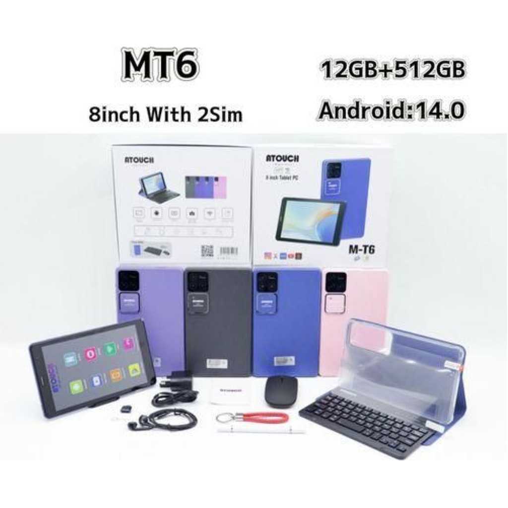 M-T6 Kids Tablet (Ages 8+) – 12GB RAM, 512GB ROM, 8″ Display, 5G, 9000mAh Battery + Wireless Keyboard & Mouse The M-T6 Kids Tablet is the perfect all-in-one device for children aged 8 and above, combining powerful performance, educational tools, and fun in one compact design. Whether for learning, reading, or safe browsing, this tablet delivers speed, storage, and safety every parent can trust. 8-Inch HD Display : Perfect screen size for reading, watching educational videos, and playing games comfortably. Massive 12GB RAM + 512GB ROM : Ensures smooth multitasking, faster app loading, and plenty of space for apps, videos, and school files. 5G Network Support : Superfast connectivity for online classes, streaming, and downloads. 9000mAh Long-Lasting Battery : Enjoy hours of uninterrupted learning and entertainment without constant charging. Wireless Keyboard & Mouse Included : Boost productivity and typing accuracy – great for homework, browsing, and games. Parental Controls : Keep your child safe online with easy-to-use settings. Educational & Entertainment Apps : Preloaded apps designed to support learning while keeping kids engaged. Why Choose the M-T6 Tablet? It’s more than just a tablet — it’s a learning companion. Built with top-tier specs, this device grows with your child’s educational and creative needs while ensuring digital safety.