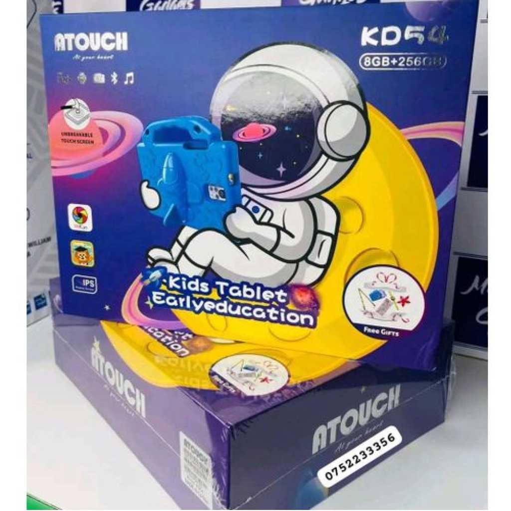 The Atouch KD54 kids android tablet, specially designed to be an ultra-portable model rugged tablet, that offers your children all the applications necessary for their full development. Its design which fits perfectly in the palm of the hand will seduce your children. Very practical, This kids tablet offers a modern design and a multitude of learning games to spend fun and educational moments. An MTK6592 Octa-core processor, along with 256GB of internal storage and 8GB of RAM, makes this a highly capable tablet. A WiFi facilitates easy connectivity of this tablet to different devices and calls to your beloved people by using Dual Sim cards. Let your child develop an early understanding of computer devices through the use of this tablet. KD54 is a popular model because of its high quality and awesome performance as it’s designed with an MTK Quad-Core processor and 8GB RAM with 256GB storage originally installed in the device. The memory can be Extended via an SD card of up to 64GB. The software inbuilt is Android 12 is able to run all the applications and games no matter what are you using your tablet for. To entertain your kids it’s the best choice with a 5000mAh rechargeable li-ion battery. With a simple cable, you will be able to hook various OTG extensions and USB devices. The KD54 has HD cameras themselves to capture your photos beautifully. To watch the videos with good colors you can enjoy 1920*800 8 inch IPS built-in. The Atouch KD54 children’s Tablet is an entertainment system for you and your family. Atouch KD54 Android tablet for kids allows your child to learn – Colors – Musical Notes – Numbers Memory, with the memory cards – The logic to solve puzzles – Animals, their names and sounds – Paint, to be creative, with a simple game suitable for children – Distinguish shapes and colors, Thinking of what to make your child busy or a way of unleashing the hidden potential in your child, our kiddies Android tab is the best solution designed to aid the improvement of intelligence quotient in kids between 2-10 years through the highly Educational Android Tablet, Moreso your preferred Advanced Android Apps can be downloaded from Various Apps stores online SPECIFICATIONS Model: KD54 Operating System: AndroidOS Version: Android 12 Screen Size: 8 inch Screen Type: TFT – Capacitive Touchscreen Connectivity: WiFi, Bluetooth, USB Storage: 256GB RAM: 8GB Processor Type: Octa-Core Camera: Dual-Camera (Front/Back) Media Ports: Memory Card MicroSD up to 32GB USB: Type C Battery: 5000MAH Built-In Lithium battery
