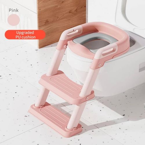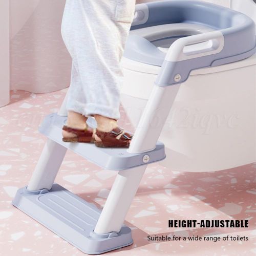 Key Features: Designed to train your toddler to develop an independent toilet habit. Soft padded seat is made of PU material, it offers great comfort. The anti-slip wide step and double handrails design make it safe and convenient for your child to go up and down and turn around. Easy to assemble and use. Splash guard design – Higher, wider splash guard design. When using, simply place it on adult toilet seat, and when not in use, just fold it up. The size of our potty training seat fits all standard size adult toilet seats generally. However, if your toilet seat is square-shaped, please measure your toilet seat before ordering. Package Includes: 1 x Potty Training Seat Product Details Materials: Polypropylene (PP) seat + Polyurethane (PU) cushion Suitable Age: 1-7 years old Weight: 2.0 kg, Size: 68 x 43 x 40 cm high overall
