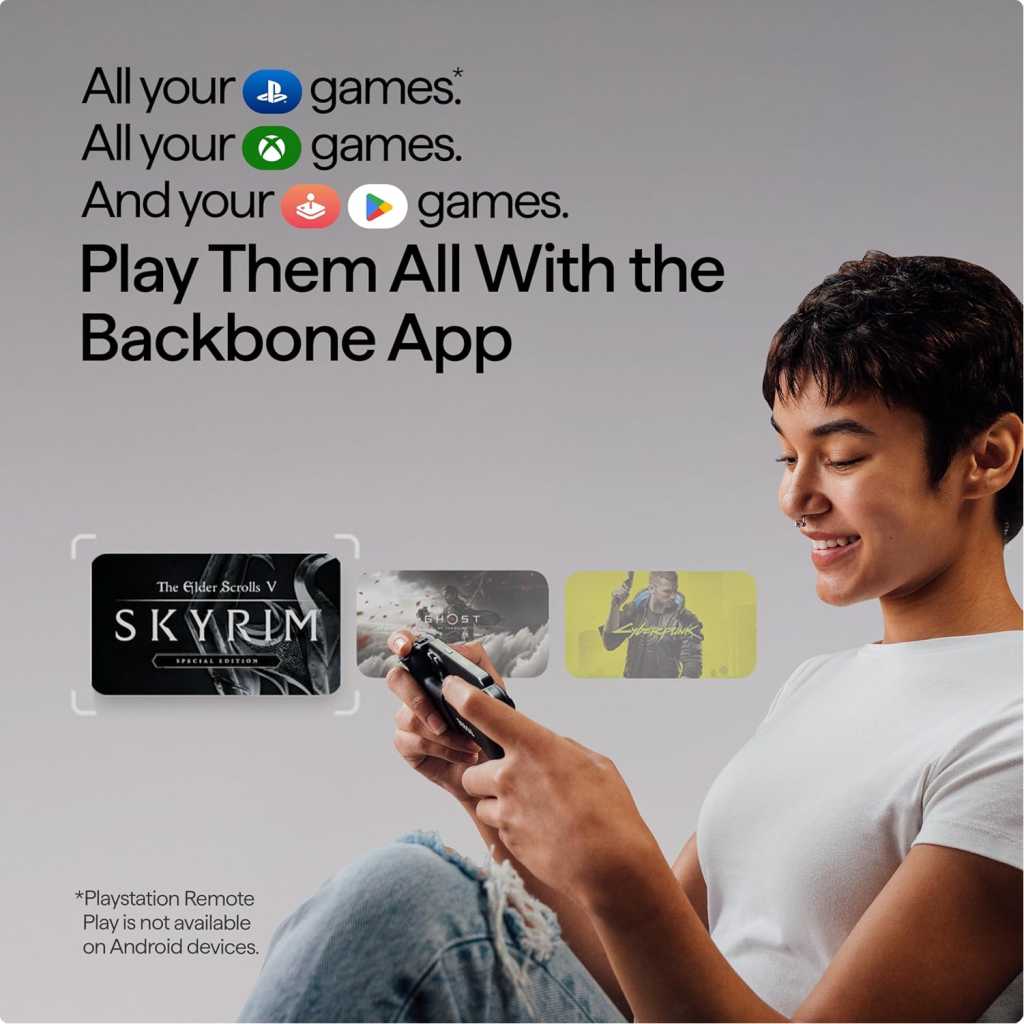 PLAY VIRTUALLY ANY GAME, ANYWHERE: Choose from free App Store games like Call of Duty & Roblox, stream through cloud gaming services such as Xbox Game Pass & GeForce NOW, or play games with Remote Play from your PlayStation*, Xbox or PC. For Android devices, PS Remote Play is only compatible with the Backbone One – PlayStation Edition CONSOLE QUALITY ON THE GO: Meticulously crafted to be comfortable and portable, our compact design features ultra wide analog triggers, highly accurate thumbsticks and responsive D-pad and buttons. LOWEST LATENCY, PASS-THROUGH CHARGING & 3.5MM HEADSET JACK: Connects to your phone’s USB-C port for ultra-responsive gameplay. Charge and use your favorite headset while you play. WORKS WITH MOST ANDROID PHONES AND IPHONE 15/16 SERIES + CASE SUPPORT: Compatible with most Android devices with USB-C connector as well as the iPhone 15/16 series. For iPhone 14 Series and older, please see our Lightning version. Magnetic adapters included to support cases BACKBONE+ TRIAL INCLUDED: Get access to exclusive perks and the Backbone app, which serves as a hub for all your games, recommends new games, connect with friends, screen record, play on any screen, and more. The Backbone can still be used as a gaming controller without Backbone+.