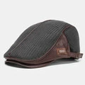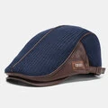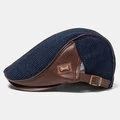 Banggood Design Mænd Strik Læder Patchwork Farve Afslappet Personlighed Fremad Hat Baskerhue