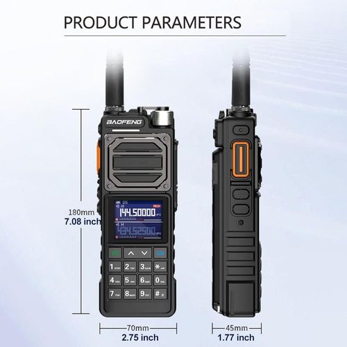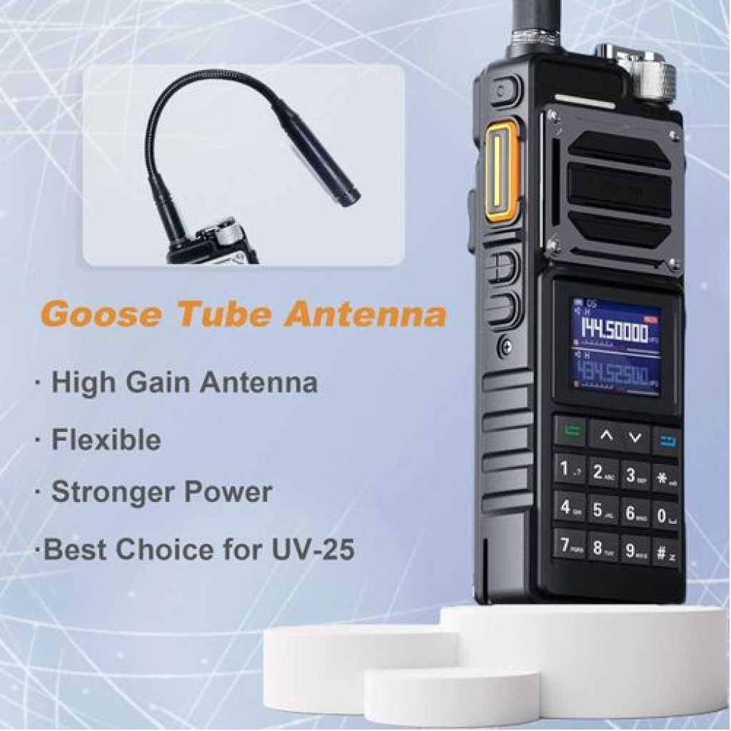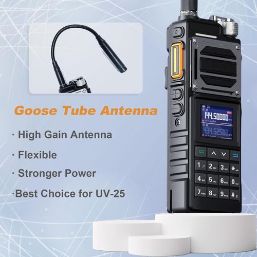 Key Features: 【Receive and Transmit】: The radio is M version, it’s designed to receive and transmit UHF and VHF frequency, if you wanna receive and transmit other frequency band, have to be outdoors or in the right place. Please feel free to reach out, if you wanna get details from us. 【Wireless Copy Frequency】:Quickly copy frequency in a short period of time, making it more convenient and efficient. 【Type-C Fast Charger】:Type-C charging is a trend for mobile devices as it has low requirements for power sources and places. The UV-25 is Type-C USB rechargeable, for which you can easily charge it like a phone in your car, with a power bank or laptop. Portable for your go-kit. 【PC & Manual Programmable】:Apart from programming the radio via computer software, users can also use the keypad to program most settings in the menu, for example,adding/deleting a memory channel,adding/removing a channel from the scanning list, adjusting VOX/squelch/power save levels, etc. 【Goose Tube Antenna】: Long signal transmission, high elasticity antenna can be bent.gain antenna.Flexible.Stronger signal. Perfect for outdoor activities. 【Kit Including】: 1xPortable Radio + 1xOriginal Goose Tube Antenna + 1xType-c Charger Cable + 1xUS Charger Adapter+ 1xLi-ion Battery + 1xBelt Clip + 1xSling + + 1xUser’s manual+1x48cm/18.89in Tactical Antenna+1xHeadset+1xProgramming Cable+1xSpeaker Microphone
