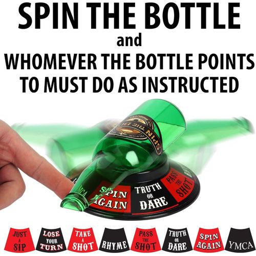 Barbuzzo Spin the Bottle - A Favorite Party Drinking Game - Pour a Pint, Spin the Bottle, and See Where It Lands - Charming Gift for Home Gatherings, Kickbacks, Parties, Tailgates, and Events - Multic
