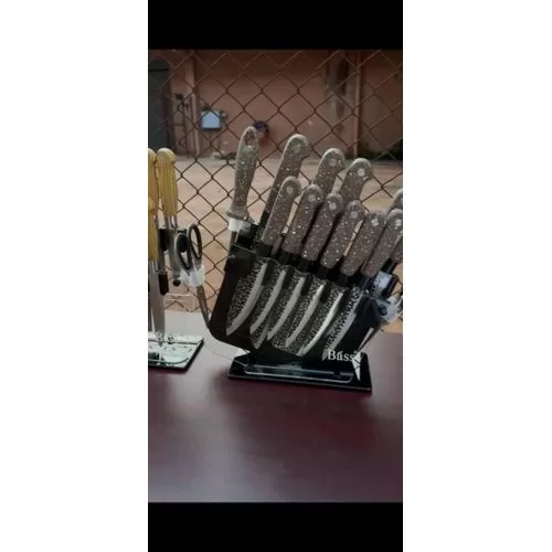 Key Features: Kitchen knives – they look harmoniously in the kitchen, do not take up much space on the working surface. Set of knives with a stand – the perfect choice for professional chefs and lovers of cooking. Knives are ideal for cutting both meat and fish, and fruits and vegetables. Type: set of knives Model No.: B20201-RB Main color: black Extra color: Multicolor Main Features Type of knives: chef, cutting knife, universal knife, topological, vegetable cleaning knife, scissors, knife, knife sharpener, 6-sent knife Appointment: universal Blade Material: Stainless Steel Material of handle: plastic Number of knives included: 11 pcs Stand/stop for knives: there Can be washed in a dishwasher: yes Additional information Features: Softouch Coated Handle
