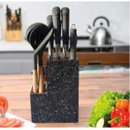 Kitchen knives – they look harmoniously in the kitchen, do not take up much space on the working surface. Set of knives with a stand – the perfect choice for professional chefs and lovers of cooking. Knives are ideal for cutting both meat and fish, and fruits and vegetables. Type: set of knives Model No.: B20201-RB Main color: black Extra color: Multicolor Main Features Type of knives: chef, cutting knife, universal knife, topological, vegetable cleaning knife, scissors, knife, knife sharpener, 6-sent knife Appointment: universal Blade Material: Stainless Steel Material of handle: plastic Number of knives included: 11 pcs Stand/stop for knives: there Can be washed in a dishwasher: yes Additional information Features: Softouch Coated Handle