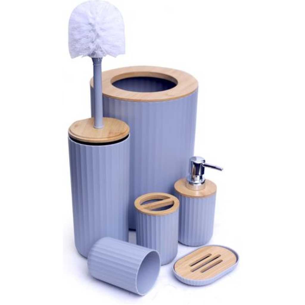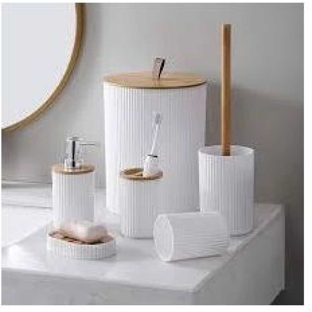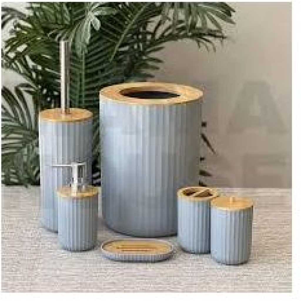 Key Features: Bathroom Accessories Set, Bathroom Wash Set, 6 Pieces Waste Bin Toilet Brush Holder Toothbrush Holder Cup Soap Dispenser Soap Dish Bathroom Accessories Gift Set- Multicolor Elegant Design: Take your bathroom decor to stylish new heights with this bathroom accessories set, very stunning and a great touch of extra elegance to the bathrooms, perfect for giving as a gift for a housewarming or a wedding. Freestanding: The base is plat and they can all stand on the countertop freely and stablely.The toilet brush has a long handle for easy grip and will keep you from dirt. Bathroom Accessories Set: One set containing 6 pieces of bathroom accessories, including a toothbrush holder, toothbrush cup, soap dispenser, soap dish, toilet brush holder, and trash can, you will get all you need for your bathroom. High-Quality Material: Made of bamboo wood and plastic material, Eco-friendly and odorless, durable to use. Wide Application: Suitable for home, bathroom, dormitory, hotel, apartment, washing room, basement, RV and etc. No matter it is for your families and friends, or for your colleagues and customers, this set is the perfect present.