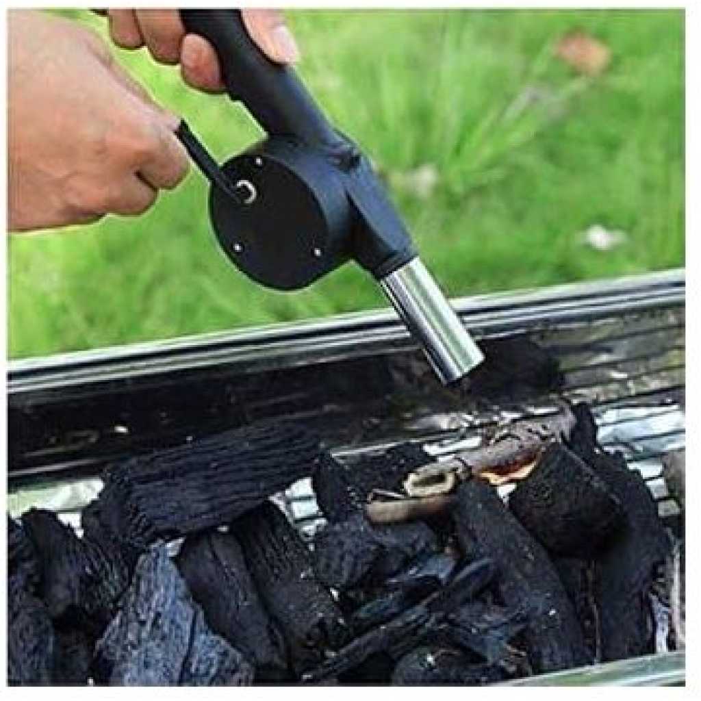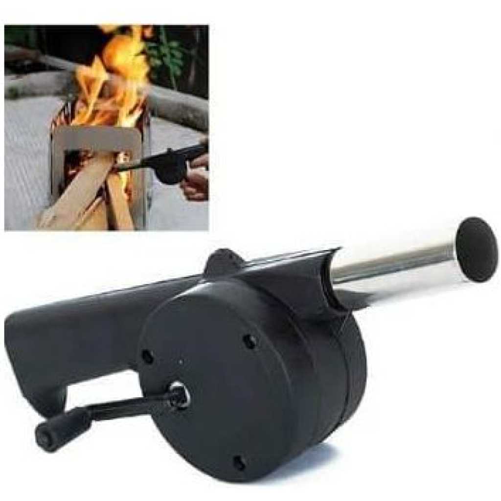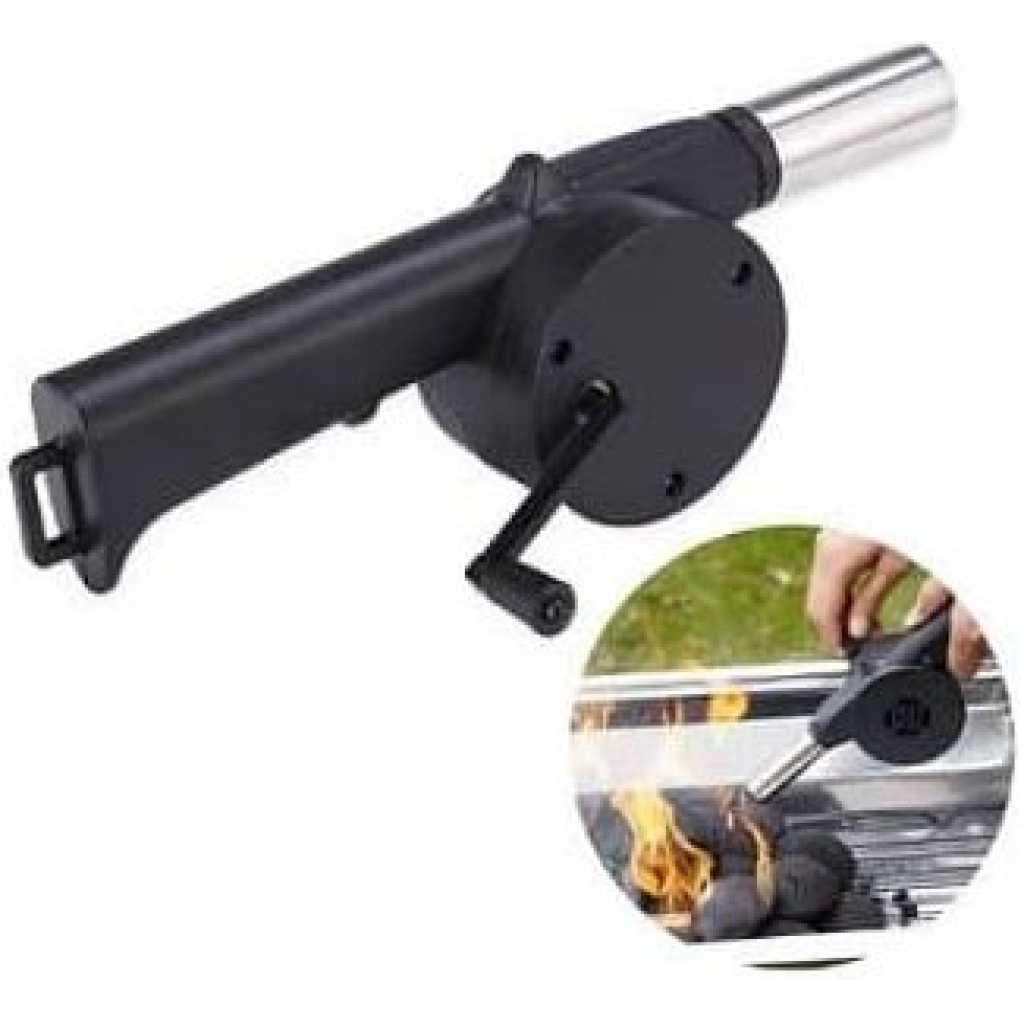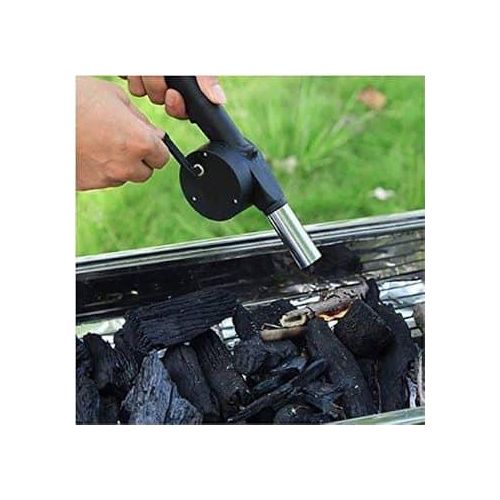 Key Features: The material of food increases with the usage of the BBQ Fan. This is a convenient and essential for the barbecue maker Just turn the handle and the internal turbine cranks out a concentrated stream of air. Hand powered Barbecue Air Blower Just turn the handle and the internal turbine forces out a concentrated stream of air onto already lit fire and get flames going in no time. Very unique and functional, Quickly heats up bbq fires, briquettes, coals and wood. High-Quality Materials: Crafted from durable and high quality materials designed to daily use while maintaining their appearance and functionality.