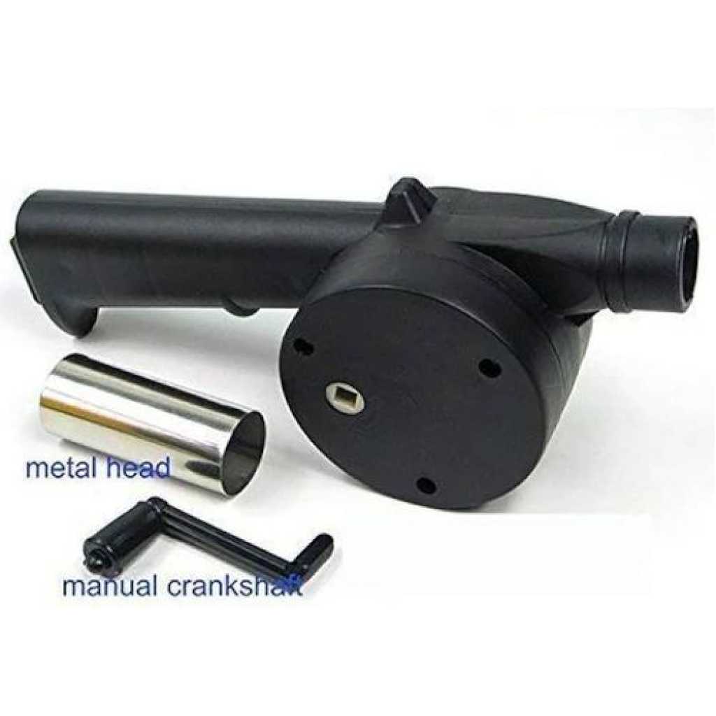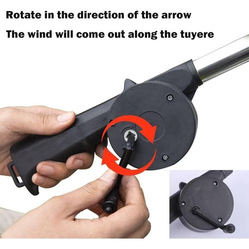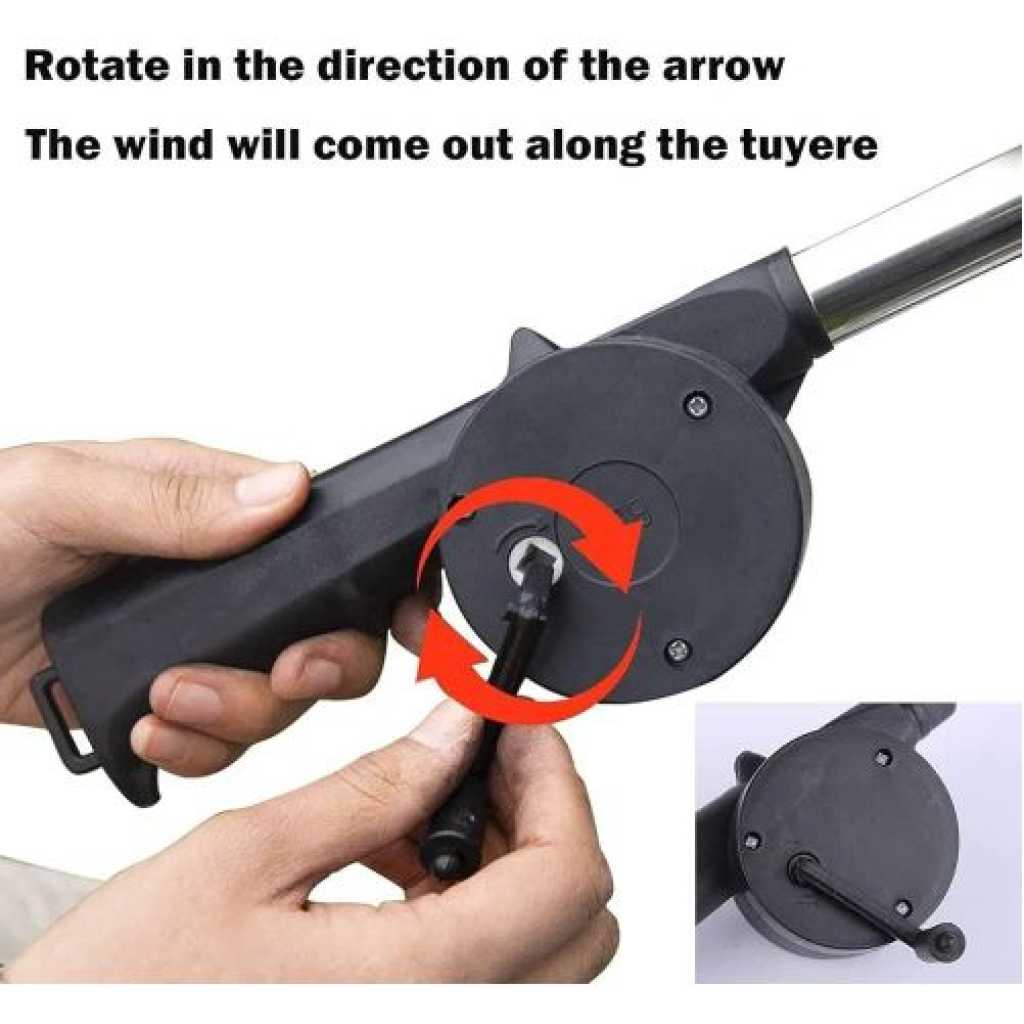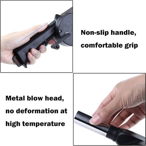Portable Hand Crank Air Blower Fan for Charcoal Grill BBQ It is fully portable so it can be taken on travels or camping trips. Compact size and lightweight are ease to carry. With manual operation design, no battery, No additional fuel required, saves energy. Speed up the barbecue rate of progress. Save time for using charcoal to make a fire. Keep your face away from the fire for your security. A great tool for fireplaces, fire pits, BBQs, smokers and camping, indoor and outdoor fireplaces. Features : High quality Made of high-grade metal materials, compared to traditional blowers, with large metal gears, large metal wrenches and large metal blades are more durable. Energy saving With manual operation design, no battery , no additional fuel required, saves energy. Portable Compact size and lightweight are ease to carry ,it can be taken on travels or camping trips. Easy to operate Just simply crank the handle and the internal turbine blasts out the air. Speed up the barbecue rate of progress, save time for using charcoal to make a fire. Applicable scene A great tool for fireplaces, fire pits, BBQs, smokers and camping, indoor and outdoor fireplaces.