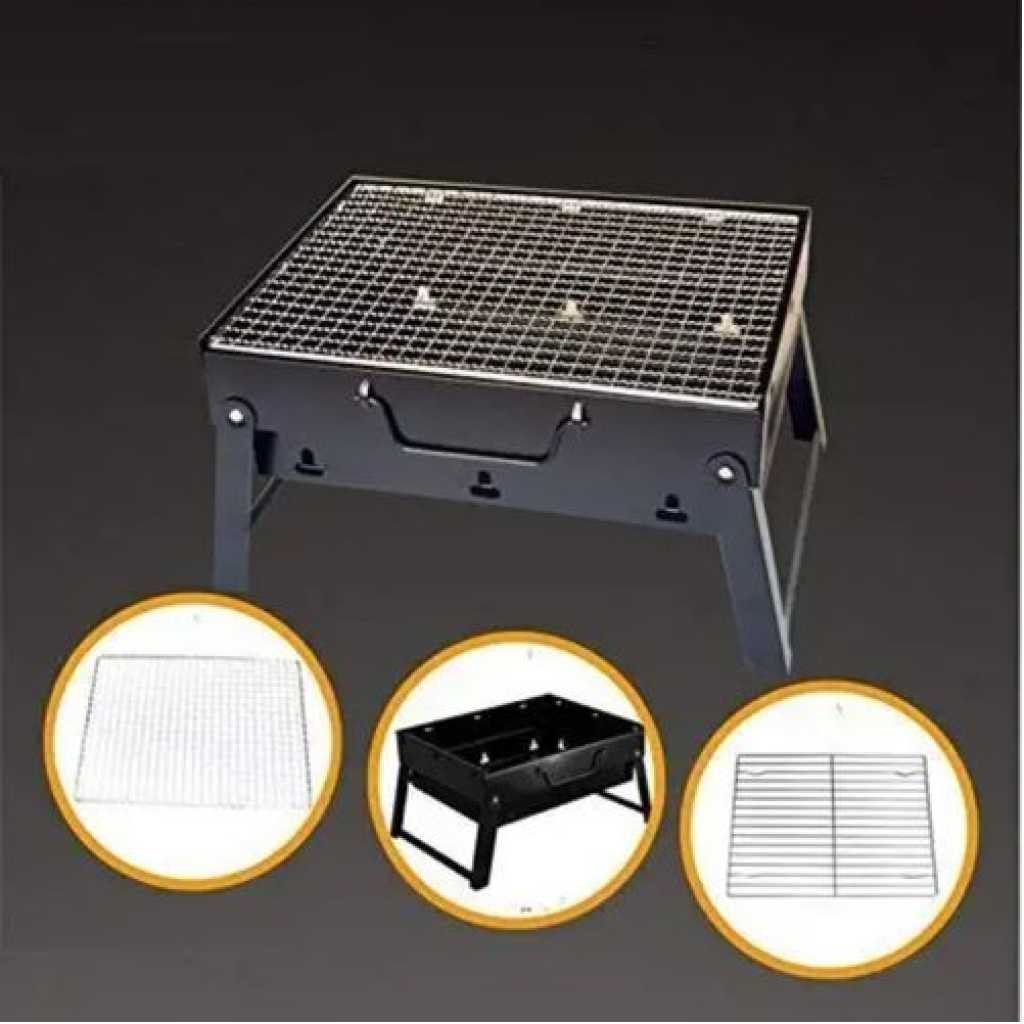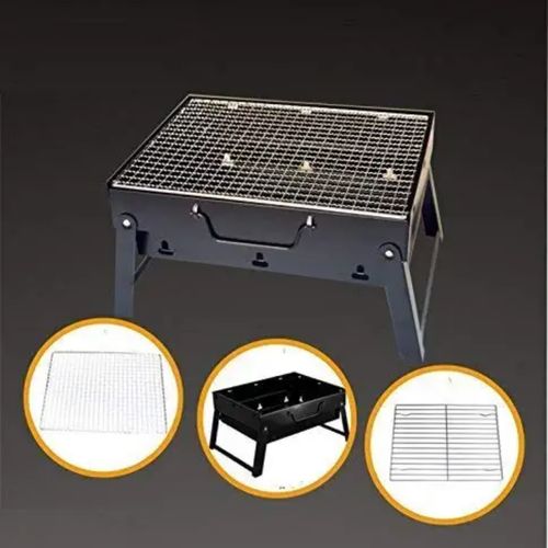 BBQ Portable & Foldable Charcoal Barbecue Grill – Black. This charcoal BBQ grill set comes in a package which contains 1-piece barbecue grill, 3 and 1 carry handle. This oven is equipped with blow slots for extra heat-producing which makes cooking easier. The dimension of the product is 44 x 29 x 23cms which does not take up much space in your kitchen or terrace. It is made of Stainless steel, the heat-resistant handles remain cool to prevent your hands getting burnt while the BBQ is roasting meat. It is equipped with air vents for both ventilation and dust discharge, the grill brings better cooking taste. It has dust-proof surface and porcelain-enameled cooking grates, it is easy to clean and has no distortion under extreme heat. Removable Tray with Knob for easy cleaning of Barbecue Grill Weight: 2.4kg, unfolded Size of the Barbeque is Length: 45cm, Width: 29cm, Height: 8cm, Height of product: 46cm Fire pan size: 44 x 27cm Fire pan thickness: 0.5mm Barbecue wire mesh diameter: 3mm Working table height: 21cm Fuel: charcoal Material: carbon steel Packaging: 1pc/gift box^ Gift box size: 49 x 25 x 7.5cm