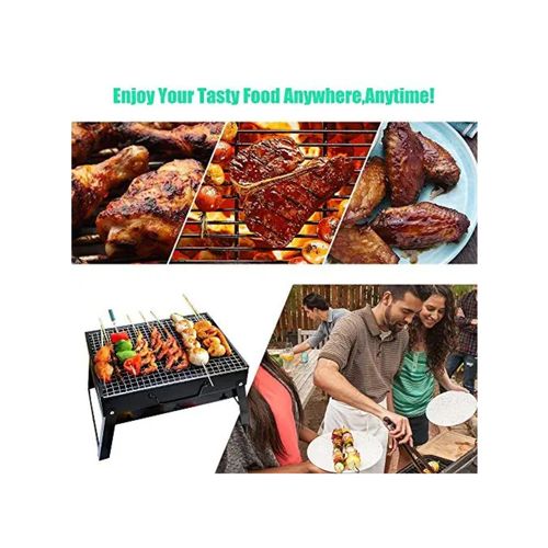 Key Features: BBQ Portable & Foldable Charcoal Barbecue Grill – Black. Unlatch the Lid It is Compact with 4 Foldable Legs Multi-purpose: Outdoor Barbecue, House Barbecue, Winter Heating, etc. Equipped with blow slots for extra heat producing Iron Barbecue Grill with Coal Based Cooking. Wooden Carry Handle for easy Handling of Barbecue Grill.