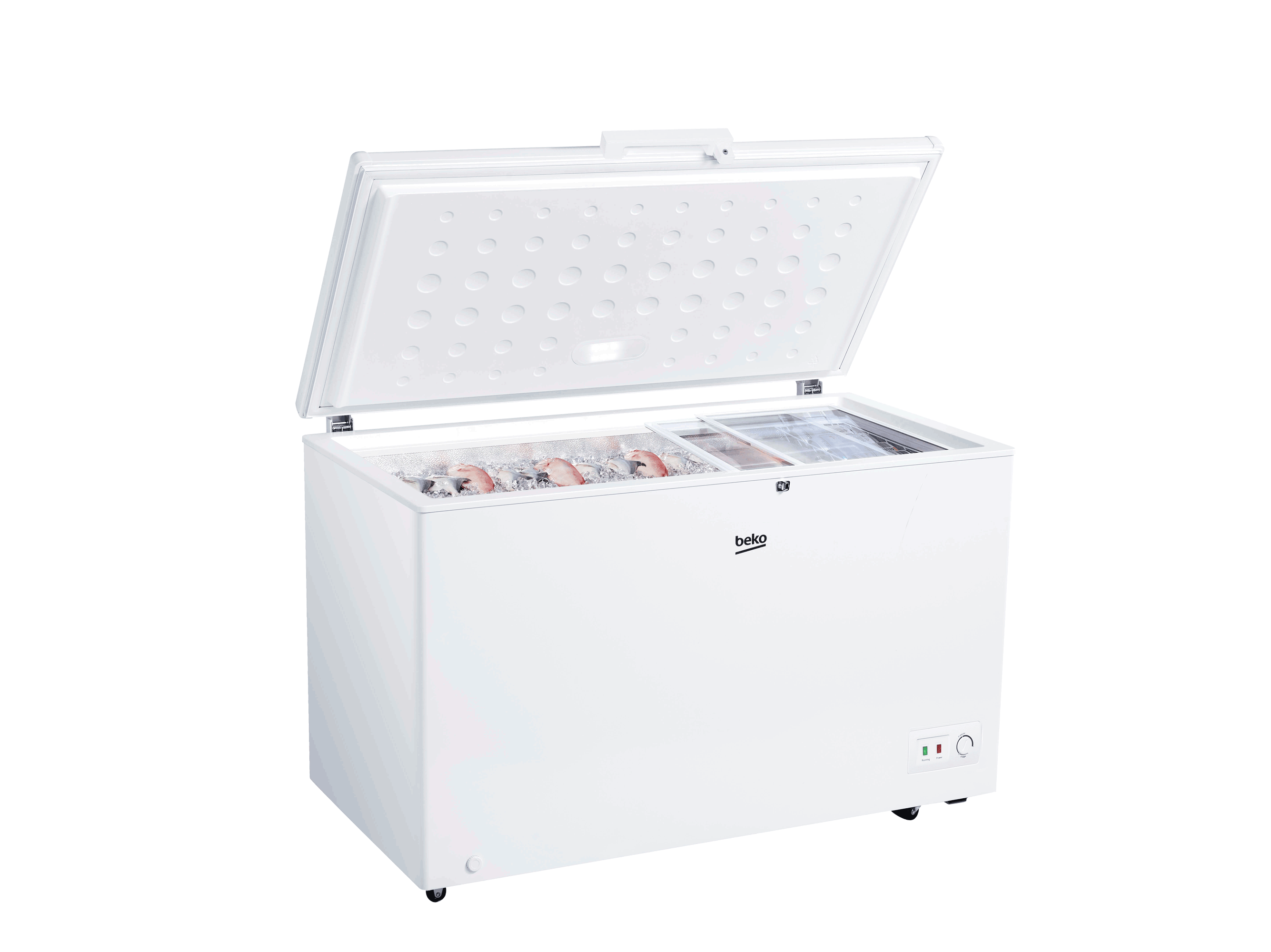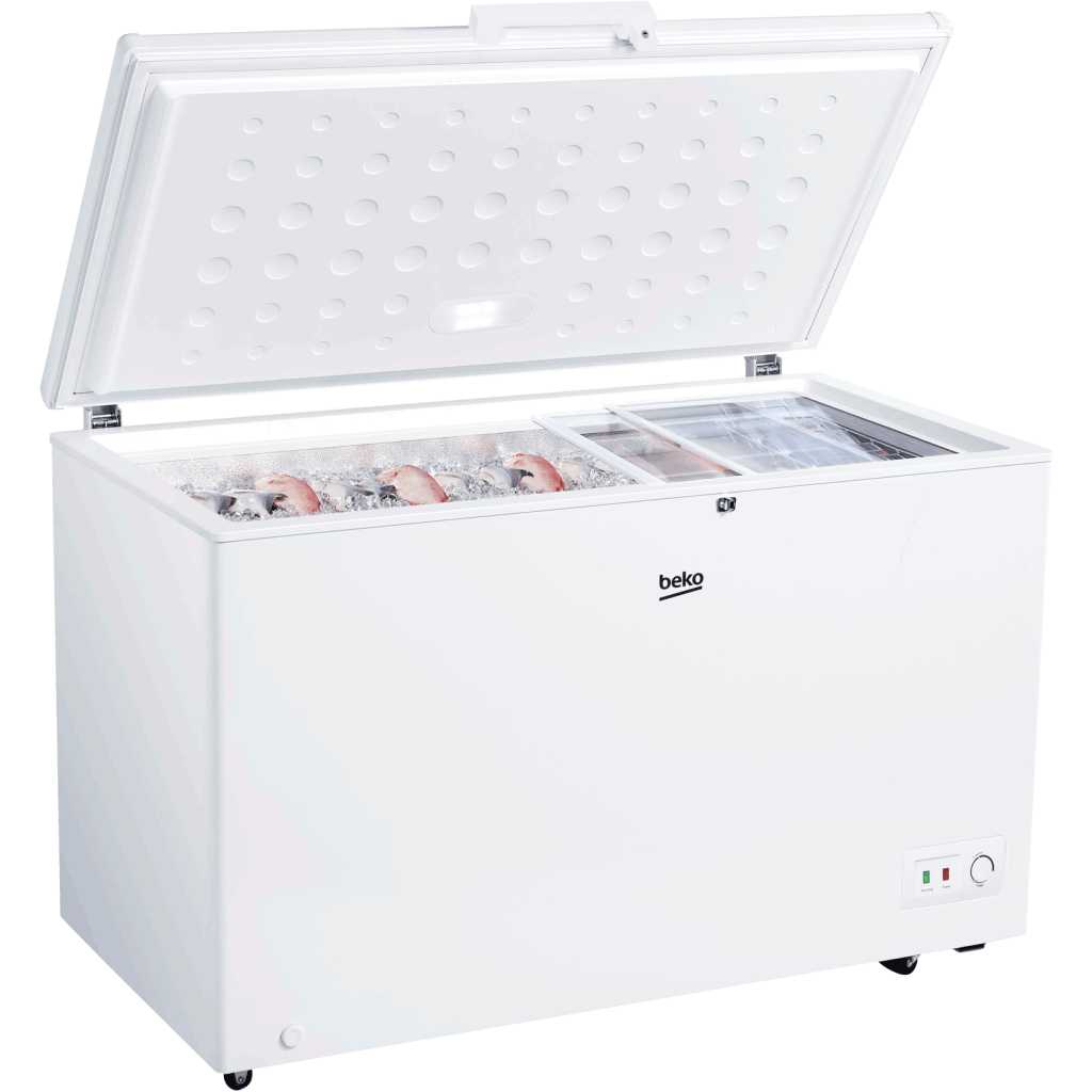 Beko 380L Chest Freezer, Single Door w/ Sliding Glass, Light, Inside Condenser, Lock, BCF3380 UK KE – White. 380 Litres Showcase Chest Freezer Net Dimensions: 130cm(W) x 70cm(D) x 85cm(H) Mechanical Temperature Control Manual Defrost Interior Sliding Glass (Showcase) LED Door Light Door Handle & Side Pocket Handle option Lock Mechanism Multimode (Fridge / Freezer) Drain Plug 3 x Wire Baskets Energy Rating: A 24 Months Warranty