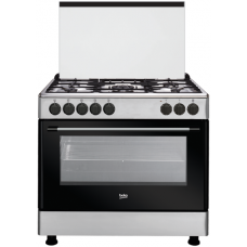 Key Features: Beko GE 15120 DX: Freestanding Cooker (Fan-assisted, 90cm) With 4 Gas + 1 Wok Gas Burners, 120 – Litres Multifunction Fan Heating Electric Oven With Gas Failure Protection – Stainless Steel 4 Gas + 1 Wok Gas Burners (Total 5 Gas Burners) 102 litres wide multifunction (fan heating) Electric Oven Gas failure safety devices on all 5 burners Electric Grill Cast Iron Pan Supports Glass Lid Integrated Ignition Turnspit / Rotisserie included Oven Lamp Energy Rating Class: B Colour: Stainless Steel Inox