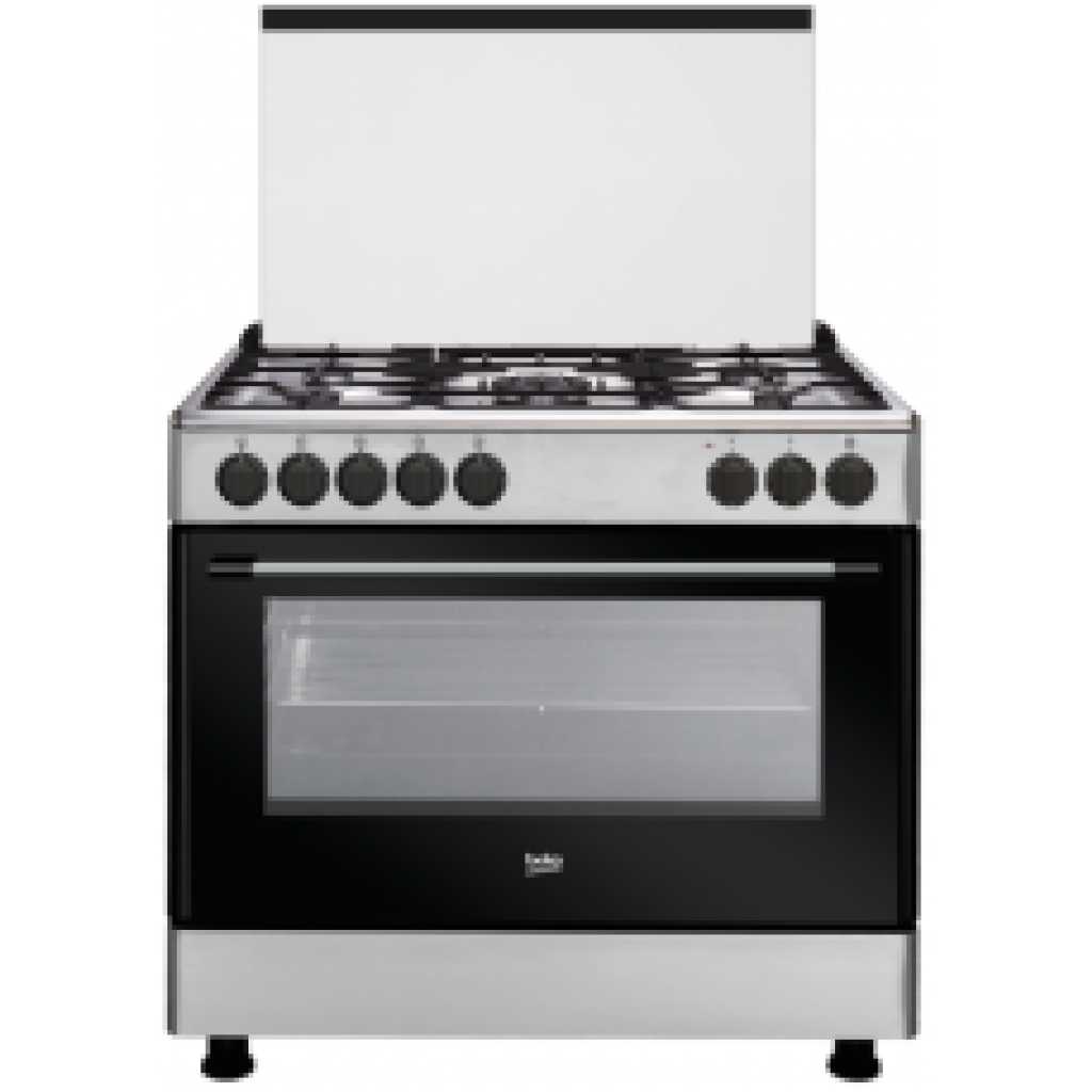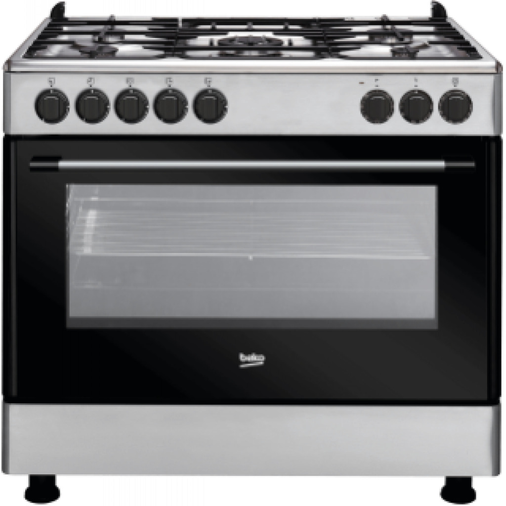 Beko 90cm Cooker, GE 15120 DX: Freestanding Cooker (Fan-assisted, 90cm) With 4 Gas + 1 Wok Gas Burners, 120 - Litres Multifunction Fan Heating Electric Oven With Gas Failure Protection - Stainless Ste