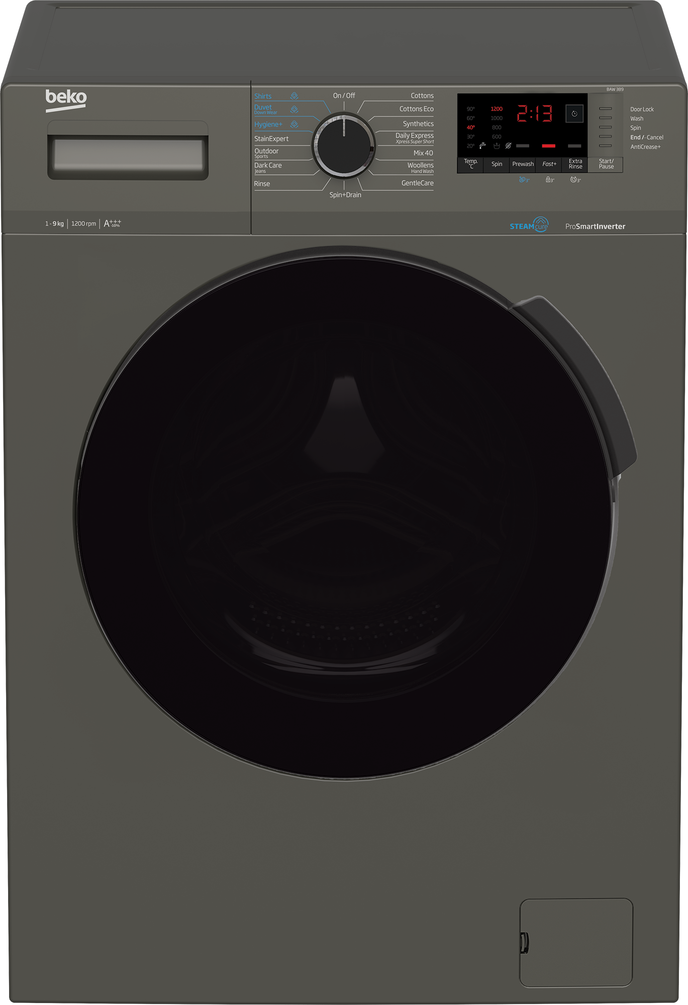 Beko 9kg Front Loading Automatic Washing Machine | BAW389 UK – Grey. A+++ ( 10%) energy rated 9kg washing capacity 15 programs 1200 rpm Beko SteamCure technology Beko ProSmart Inverter Motor (Brushless Silent) Automatic water control Manhattan grey Key Features: Beko 9kg Front Loading Automatic Washing Machine | BAW389 UK – Grey. A+++ ( 10%) energy rated 9kg washing capacity 15 programs 1200 rpm Beko SteamCure technology Beko ProSmart Inverter Motor (Brushless Silent) Automatic water control Manhattan grey