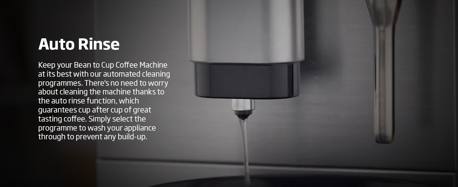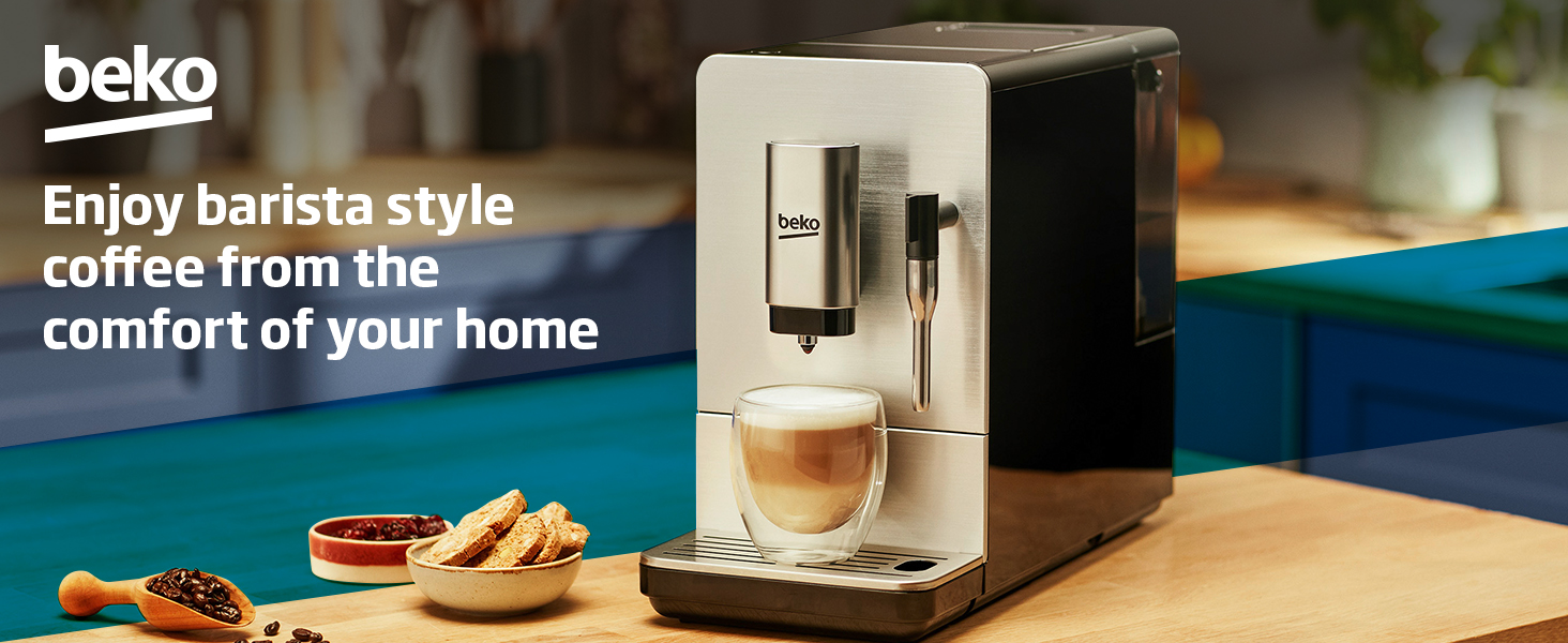 Key Features: Beko Bean to Cup Coffee Machine CEG5311X | 19 Bar Pressure | Steam Nozzle for Milk Frothing | One Touch LCD Control | Removable 1.6L Water Tank STEAM NOZZLE- Enjoy a delicious foamy finish on your coffee with this machine’s integrated steam nozzle. Whether you prefer a flat white, latte or a cappuccino, the integrated steam nozzle will produce the perfect level of milky foam for your beverage. ONE TOUCH LCD CONTROL- This sleek, professional machine features a LCD touch control panel, where you can easily choose between functions. Simply select single or double espresso to create your perfect beverage. INTEGRATED COFFEE BEAN GRINDER – Make your coffee, your way. The integrated grinder has a 125g capacity and 19 grind settings, so whether you love your fresh coffee slighty weaker or full bodied and strong there’s the exact setting for you. 19 BAR PRESSURE- Delivering 19 bar pressure, our coffee machine’s ensure a rich, aromatic flavour with every cup as water is forced through the coffee beans to achieve perfect barista-style, full-bodied espressos from the comfort of your home. PRE-BREWING SYSTEM- Our pre-brewing system means you can enjoy a perfect tasting coffee. By distributing a quick power burst, our pre-brewing system releases the oils in your coffee beans, providing the maximum amount of aroma and depth. REMOVEABLE WATER TANK- Featuring a large 1.6L removable water tank, you won’t need to worry about awkwardly refilling you machine with a jug of water. Simply unclip the tank, refill directly from the tap and enjoy barista-style coffee cup after cup. AUTO RINSE- Keep your Bean to Cup Coffee Machine at its best with our automated cleaning programmes. There’s no need to worry about cleaning the machine thanks to the auto rinse function, which guarantees cup after cup of great tasting coffee. Simply select the programme to wash your coffee machine through to prevent any build-up.