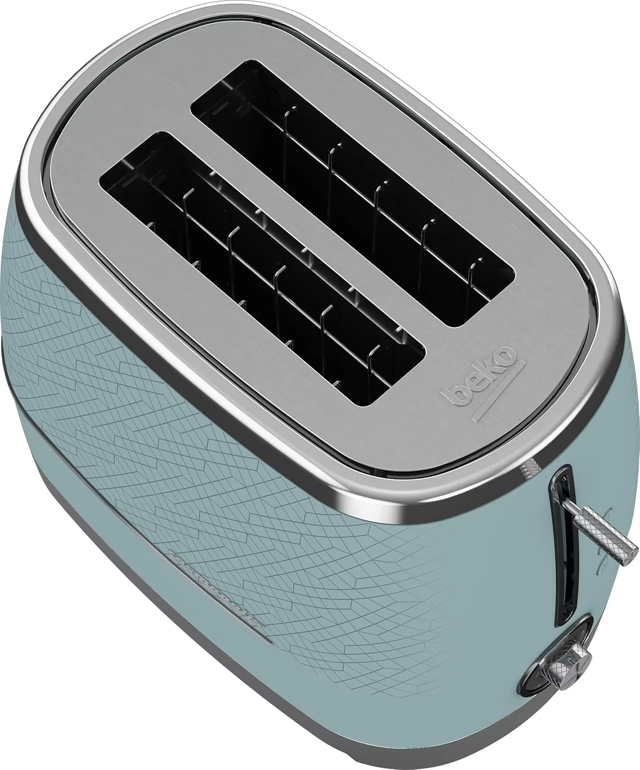 Key Features: Beko Cosmopolis Toaster TAM8202T. Power: 900W Slice capacity: 2 High Lift function Detachable crumb tray 6 browning Levels Bun-warmer Attachment Defrost function Cancel Reheat Duck egg teal colour