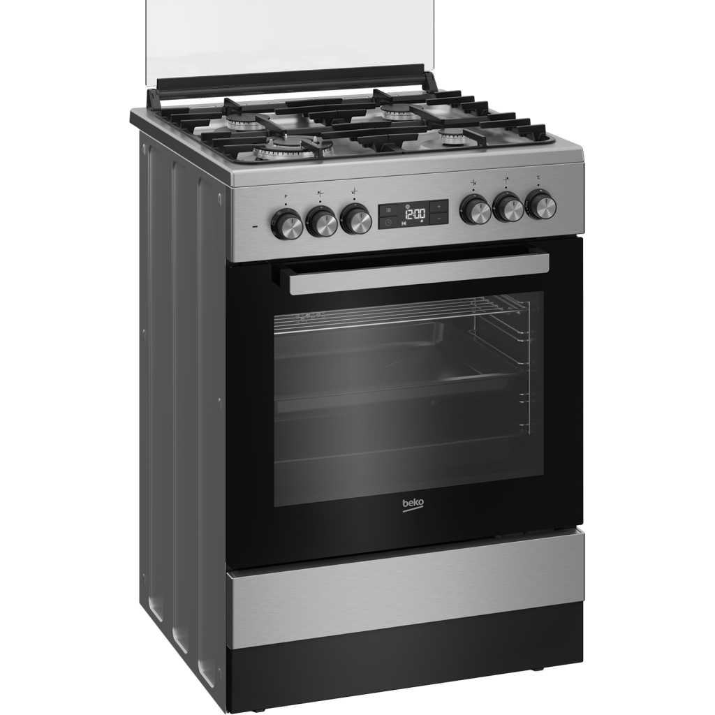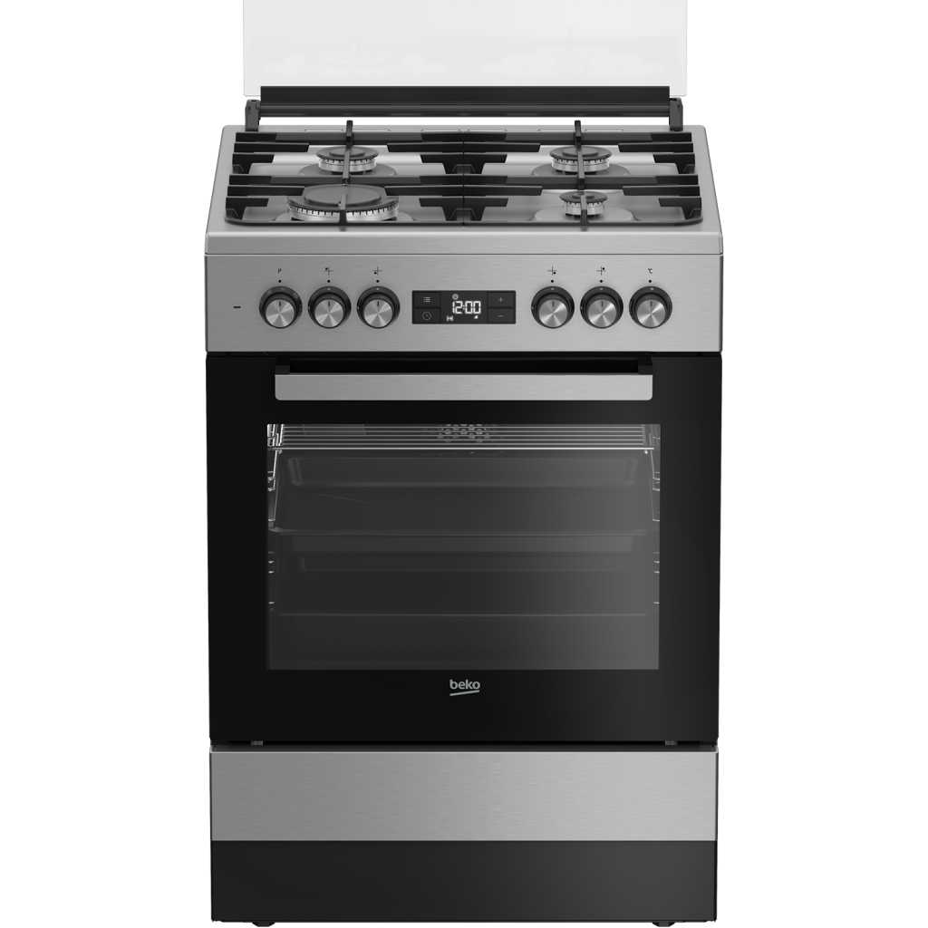 Key Features: Beko Full Gas Cooker 60x60cm | 3 Gas Burners + 1 Work Hob | LED Display | Electric Oven & Grill | Steam Cleaning | Defrost | FSM61330DXDSL. Inox No plug 3 GaS + 1 Wok hob Integrated ignition (hob) Flame failure device Cast iron pan support Multifunction oven with 8 functions Bottom heating Electric Grill Fan assisted cooking Defrost function Steam Cleaning LED Display