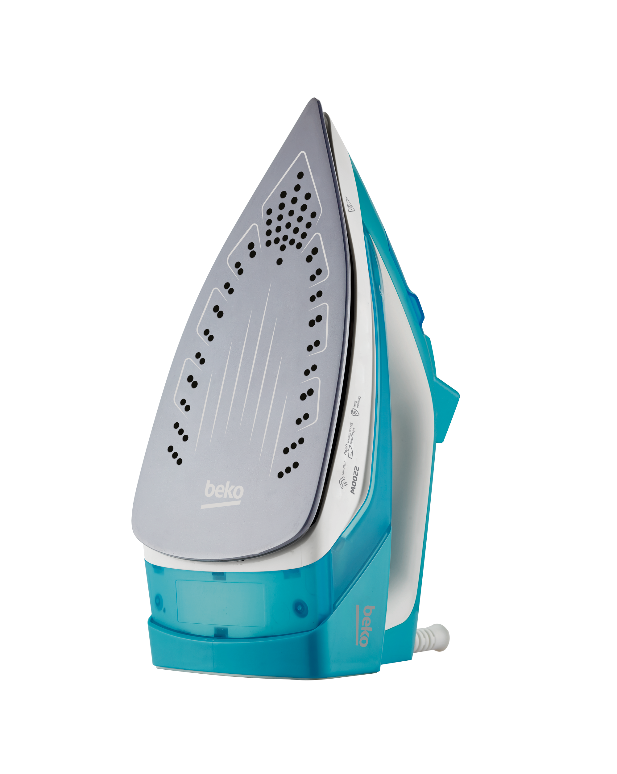 Beko Steam Iron, 2200W, Ceramic Soleplate, Anti-Drip, Self Cleaning, 25g/min Continuous Steam, SIM 3122 T – Turquoise. Ceramic-coated soleplate with steam pools. 2200Watts. 25 g/min continuous steam. 110 g/min shock steam, Manual knob control, and steam control. 3-Way Auto shut-off. Mechanical Anti-Drip, Self-Clean. Vertical Steam. Key Features: Beko Steam Iron, 2200W, Ceramic Soleplate, Anti-Drip, Self Cleaning, 25g/min Continuous Steam, SIM 3122 T – Turquoise. Ceramic-coated soleplate with steam pools. 2200Watts. 25 g/min continuous steam. 110 g/min shock steam, Manual knob control, and steam control. 3-Way Auto shut-off. Mechanical Anti-Drip, Self-Clean. Vertical Steam.
